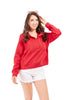 Women's Stripe Deep V-Neck Short Sleeve Knit Top-Red