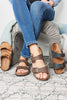 Women's Stripe Deep V-Neck Short Sleeve Knit Top- Mocha
