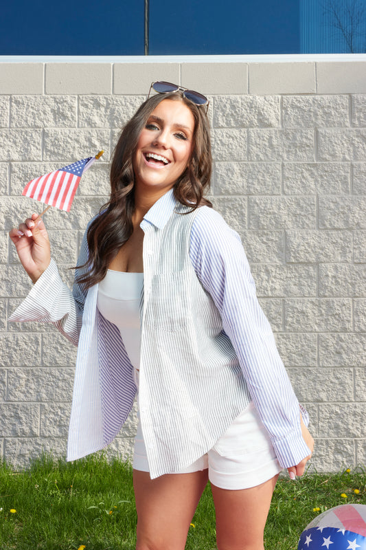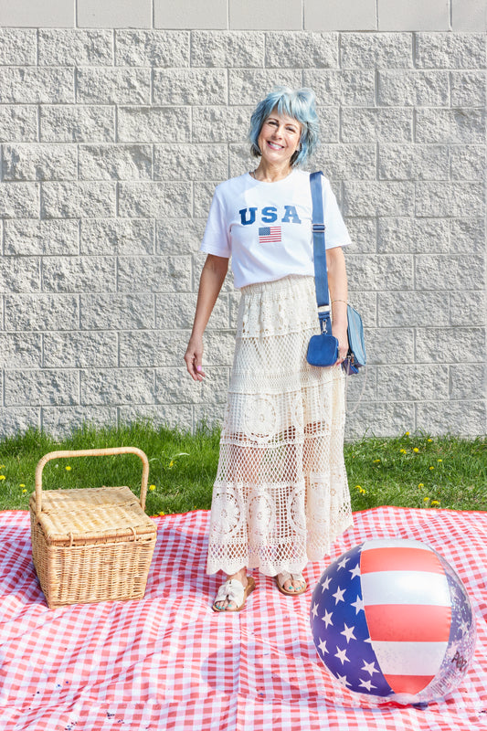 Celebrate in style with our size-inclusive USA Collection, featuring red, white, and blue tops, denim, skirts, and graphic tees. Perfect for Memorial Day, Fourth of July, and summer parties, these Americana-inspired pieces are available in sizes XS–3XL. Festive, flattering, and made to stand out—shop now and show your patriotic pride!
