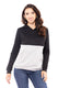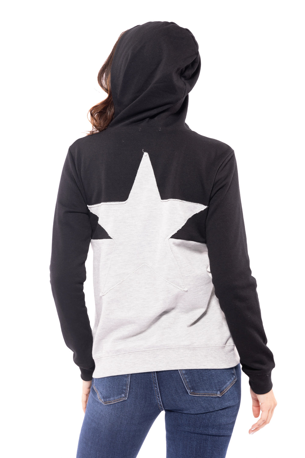This color block hoodie pullover features two contrasting colors on the top and bottom with a raw-stitched star on the back. Feel like a star however you style this hoodie! It pairs great with both denim and leggings.