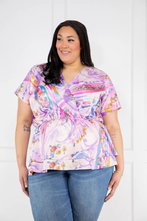 The Add A Little Color Top from Emily Wonder will add the perfect amount of color to your wardrobe! This short sleeve top features a surplice neckline, an elastic waist, and a a ruffled tiered hem. The Add A Little Color Top can be paired with your favorite dress pants for a day at the office, or paired with your favorite denim and wedges for a night out with the girls!