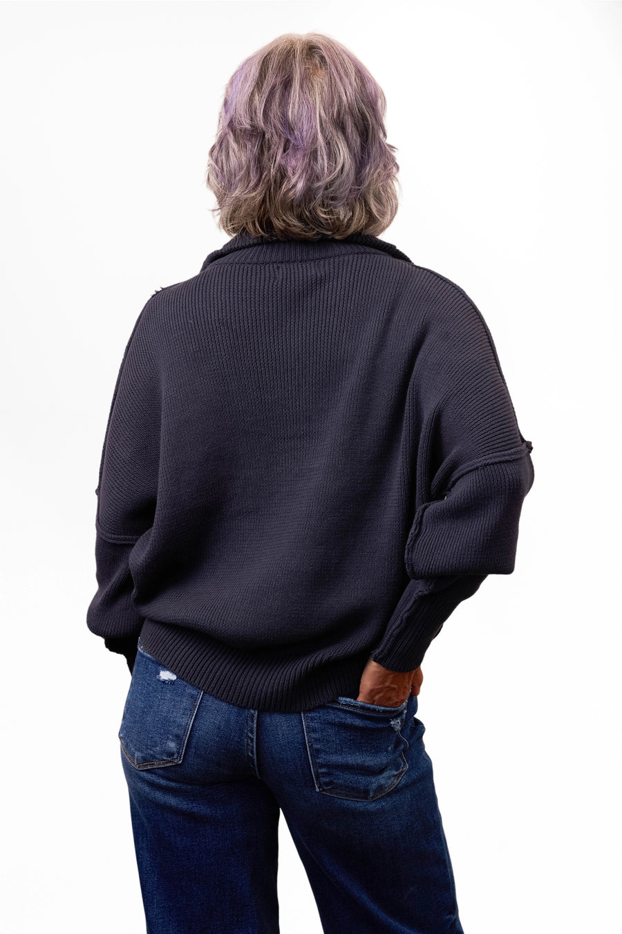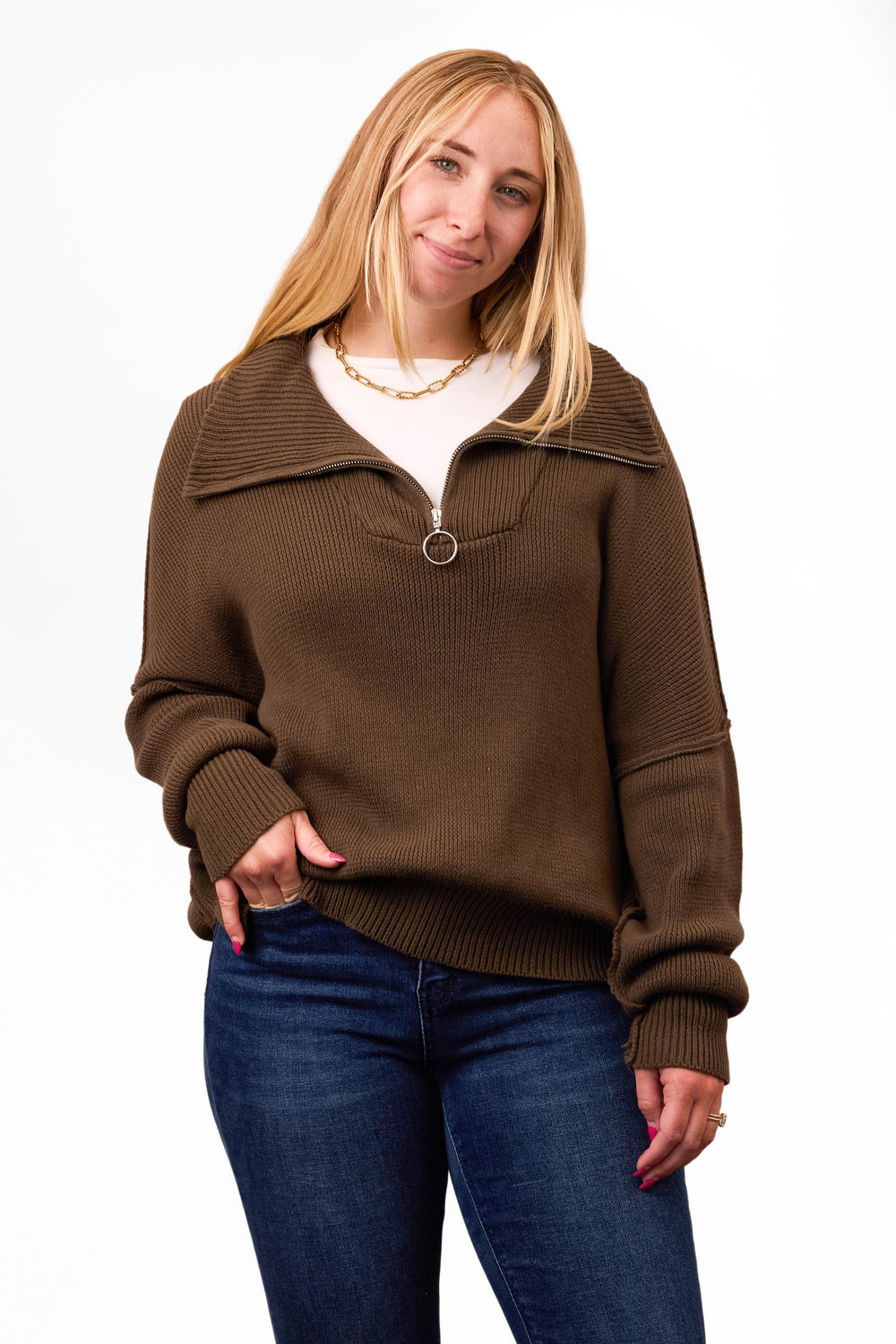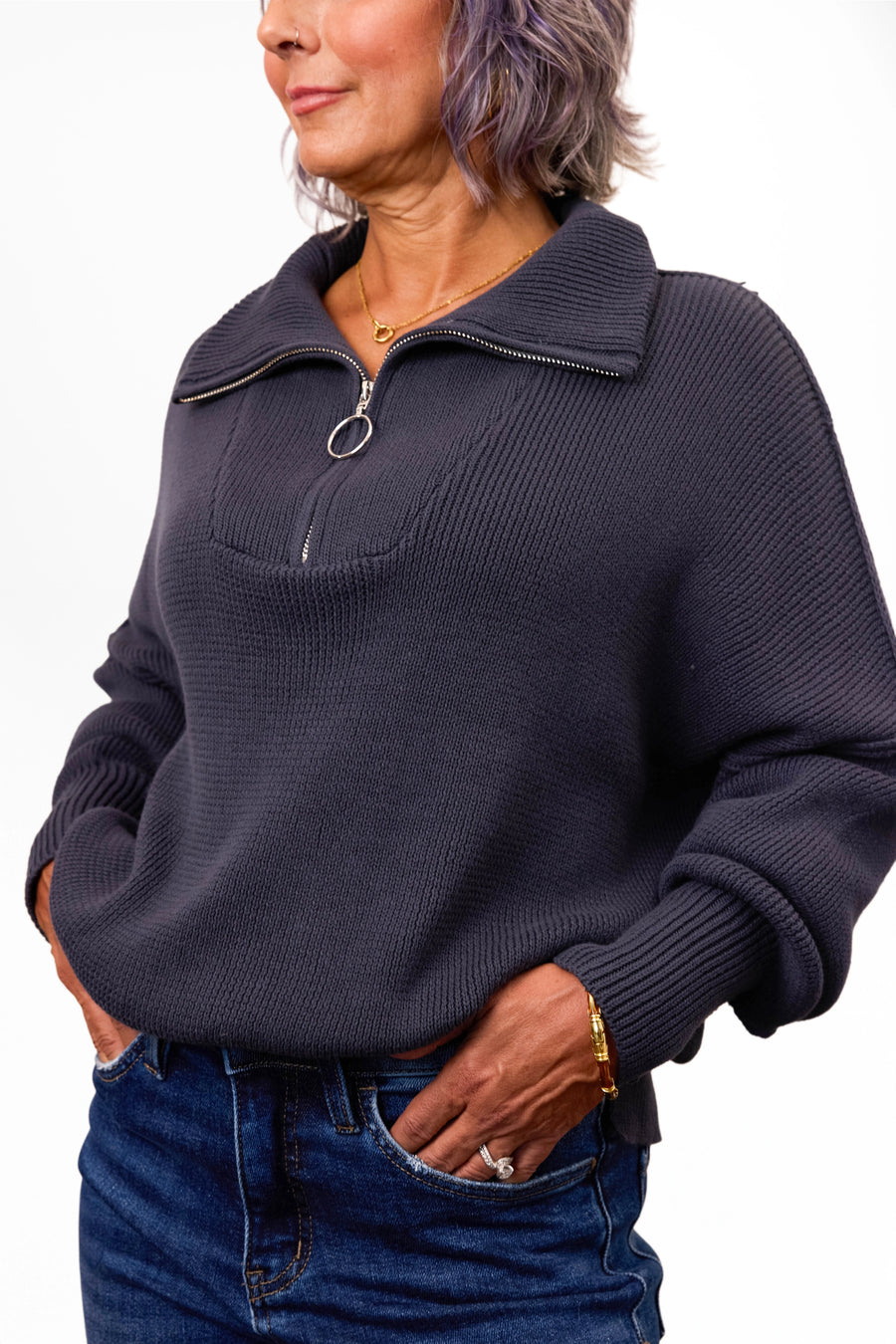 The Be The Anchor Sweater by Ava Lane Boutique will be the anchor of your wardrobe! It features a 1/4 zip collar with ring pull, drop shoulder with reverse knit seam, ribbed cuffs, and a straight ribbed hemline with slits on the sides. Pairs perfect with skinny denim and your favorite boots!