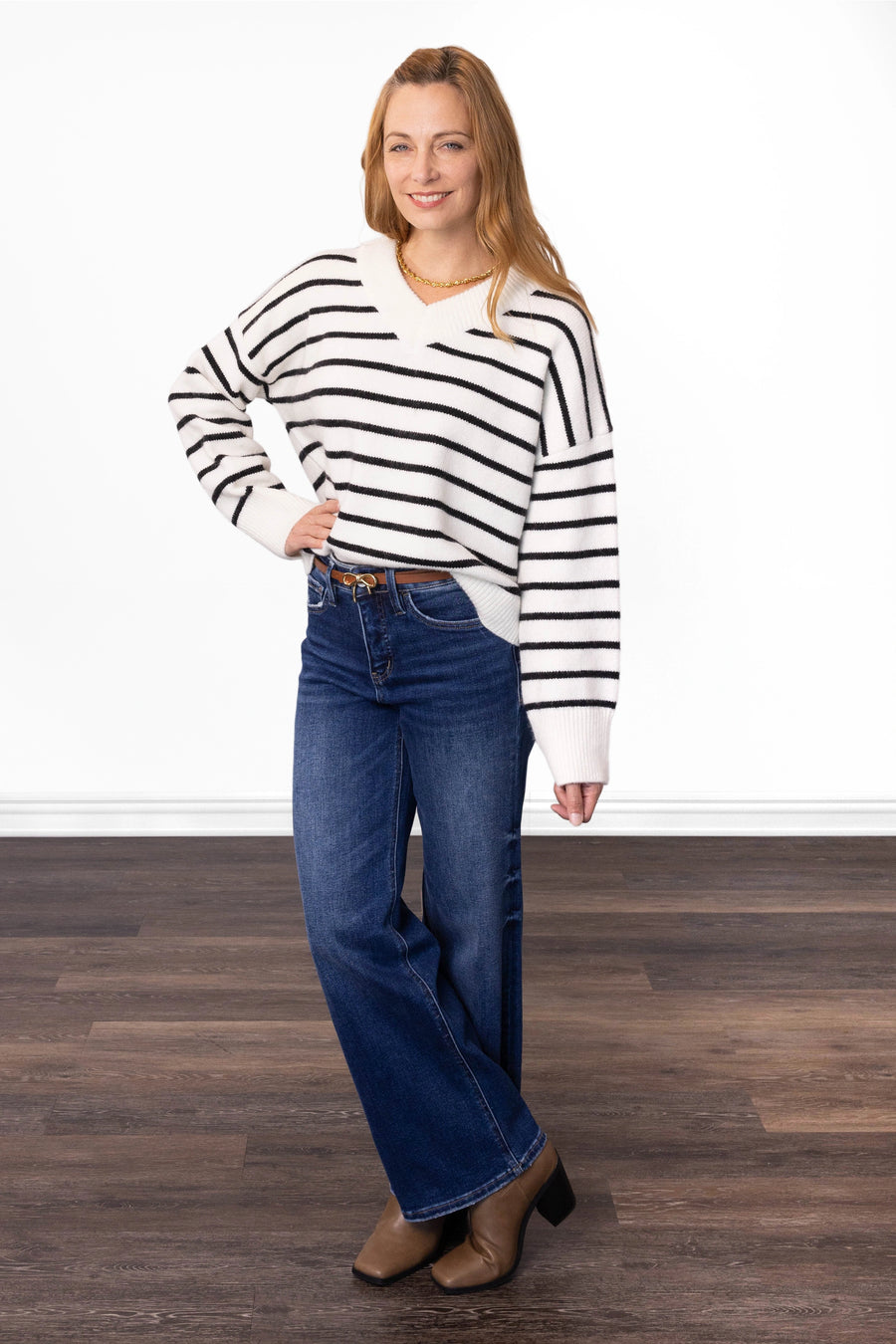 Get ready to spice up your sweater game with our ALB Custom Blair Cropped Sweater! This unique piece features a heavy knit, ribbed V-neck, contrasting stripe, and ribbed cuffs and hemline for a fun twist on a classic design. Stay stylish and cozy this season with this must-have sweater.