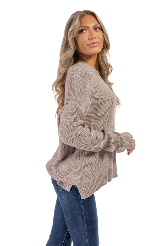 The ALB Custom Boat Dayz Knit 2.0 by Ava Lane Boutique is a beautiful high quality sweater that is truly perfect all year round. This sweater features a V-neckline, long sleeves, and hi-lo hemline with slits on the sides. It has an oversized vibe that flatters all body types.