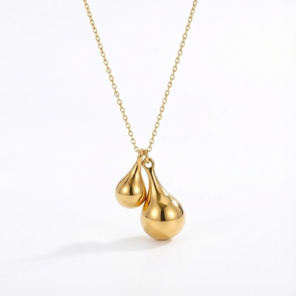 Add a touch of modern elegance to your look with the ALB Custom Double Teardrop Pendant Necklace. Crafted from durable 18k gold-plated stainless steel, this piece features two smooth, reflective teardrop charms that create a soft, fluid silhouette. Designed for effortless sophistication, this necklace blends simplicity with refined charm—making it an ideal choice for gifting or elevating your own jewelry collection.