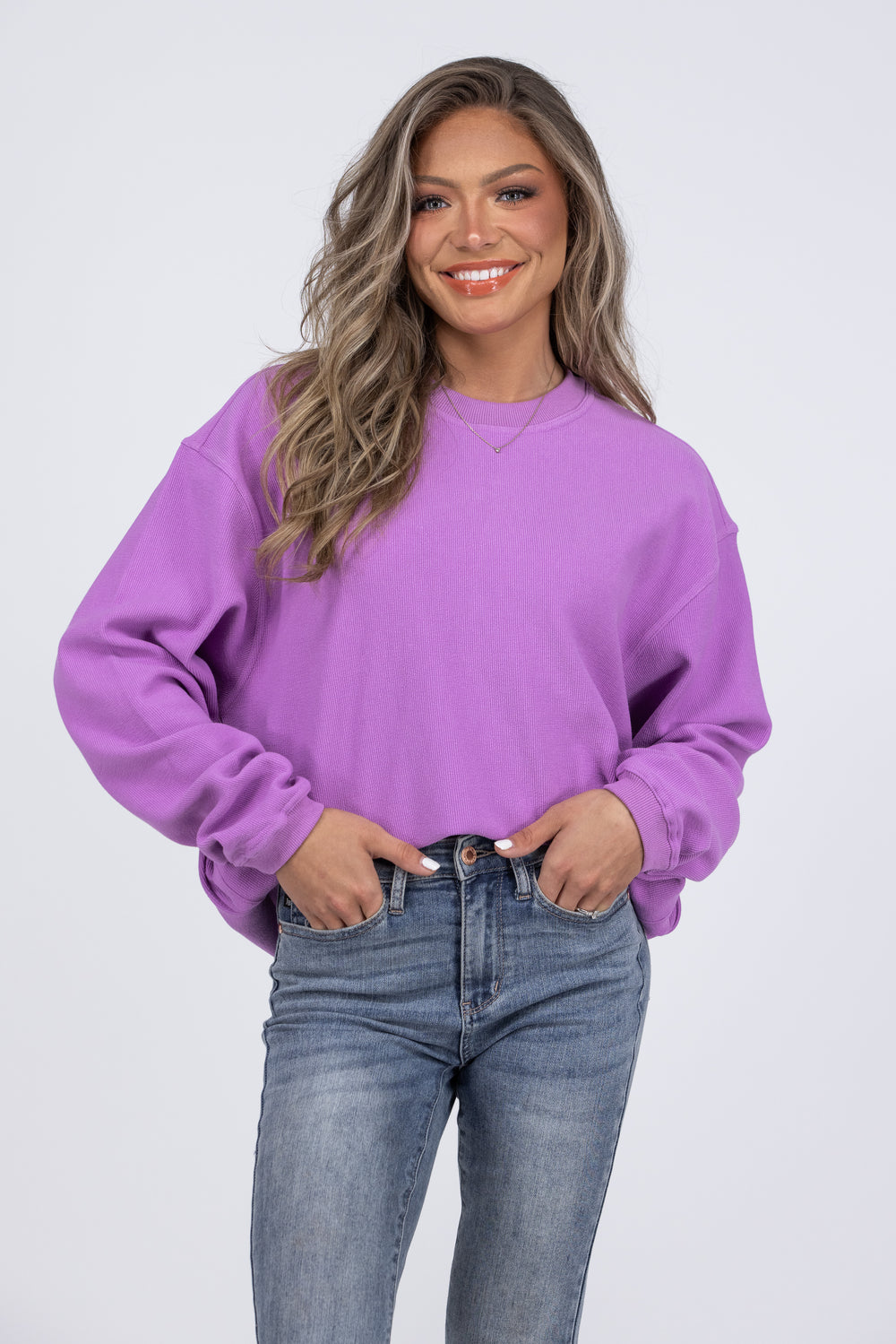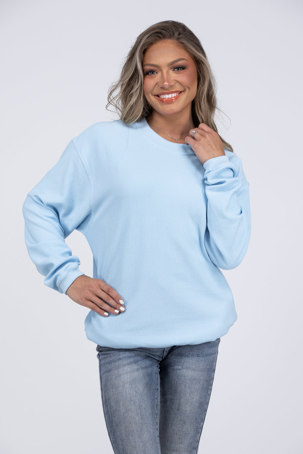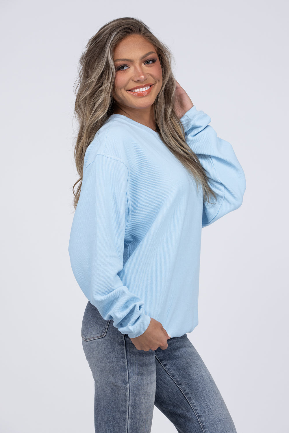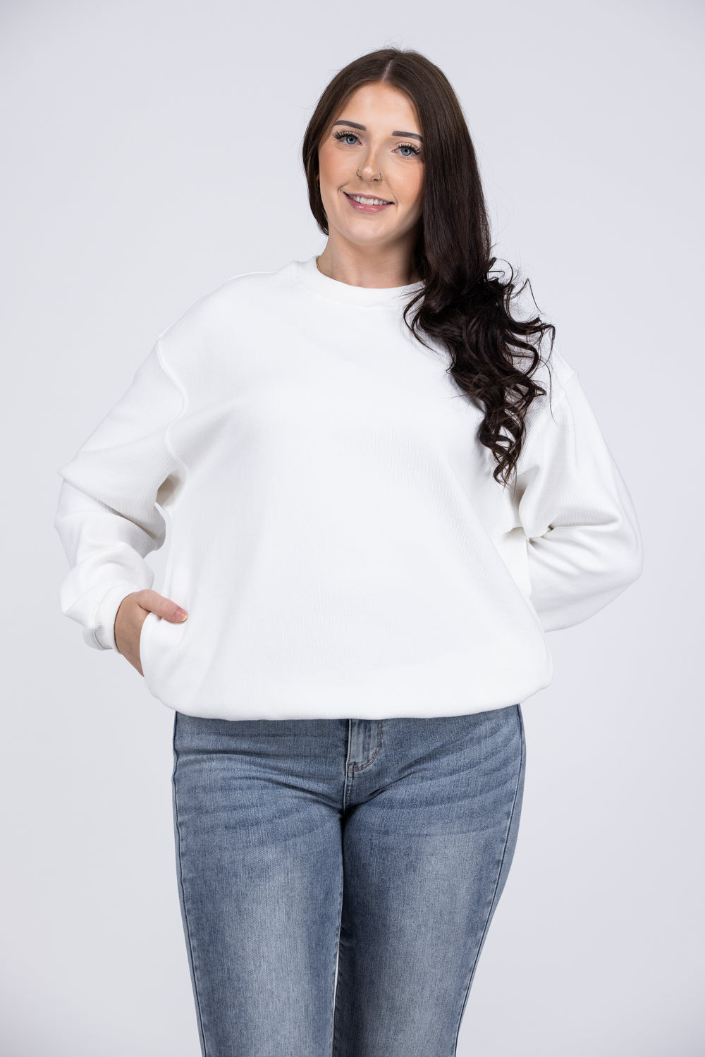Get ready for a closet must have! The ALB Custom Easy Street Crewneck Sweatshirt is the perfect lightweight sweatshirt! It features a rounded neckline, oversized ribbed fabric, banded neck, cuffs, and hemline, and hidden pockets. Pair with your favorite denim and sneakers for a fun, comfy, casual look!