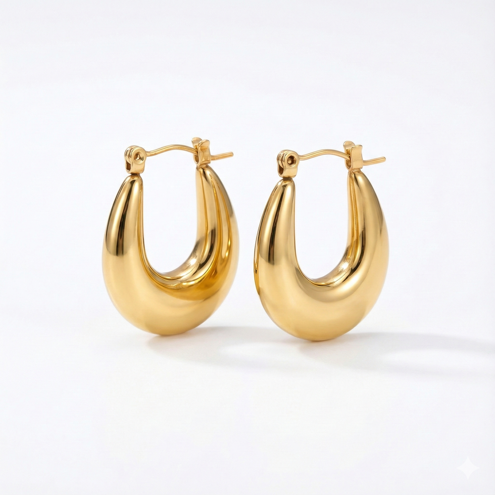 Add a touch of modern sophistication to your look with the ALB Custom Gold Oval Hoop Earrings. Crafted from high-quality stainless steel, these hoops feature a smooth, sculpted shape that offers a fresh twist on a classic design. The polished gold finish gives each pair a rich, luxurious shine, while the sturdy hinged closure ensures comfortable, secure wear throughout the day.