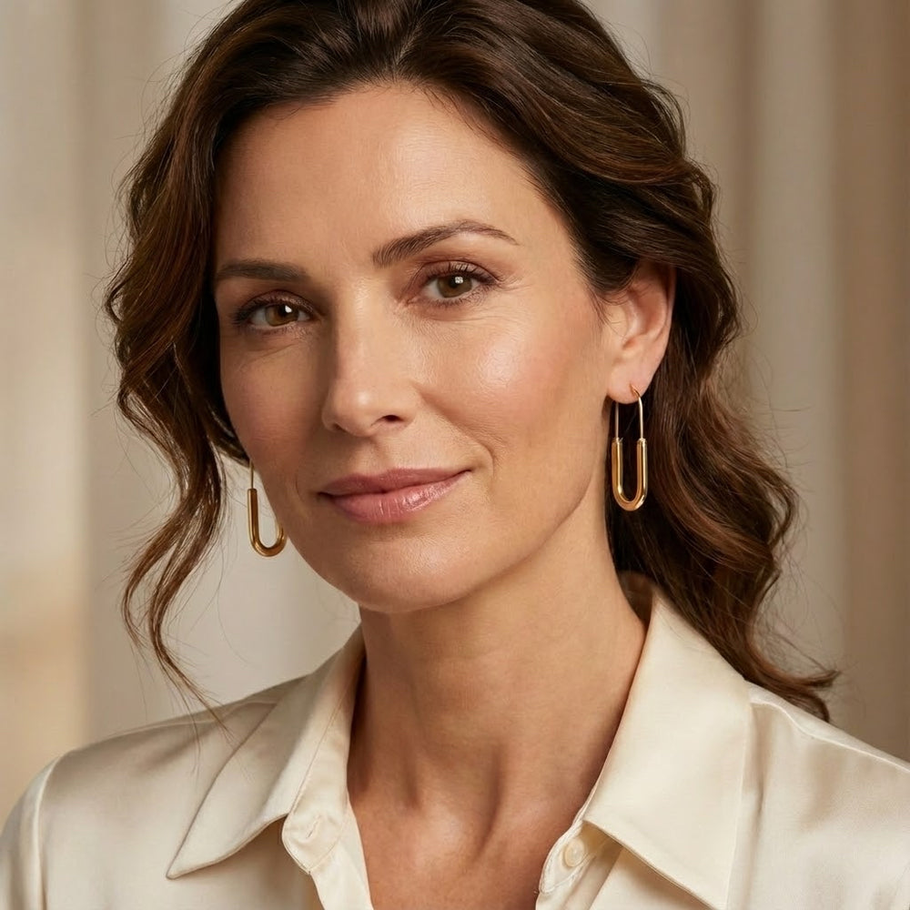 Bring a sleek, contemporary touch to your jewelry collection with theALB Custom Gold U-Shaped Hoop Earrings. Designed with a smooth, elongated silhouette, they offer a minimalist aesthetic that stands out with effortless style. The slender upper wire transitions into a polished U-shaped base, creating a light, comfortable design that’s perfect for everyday wear.