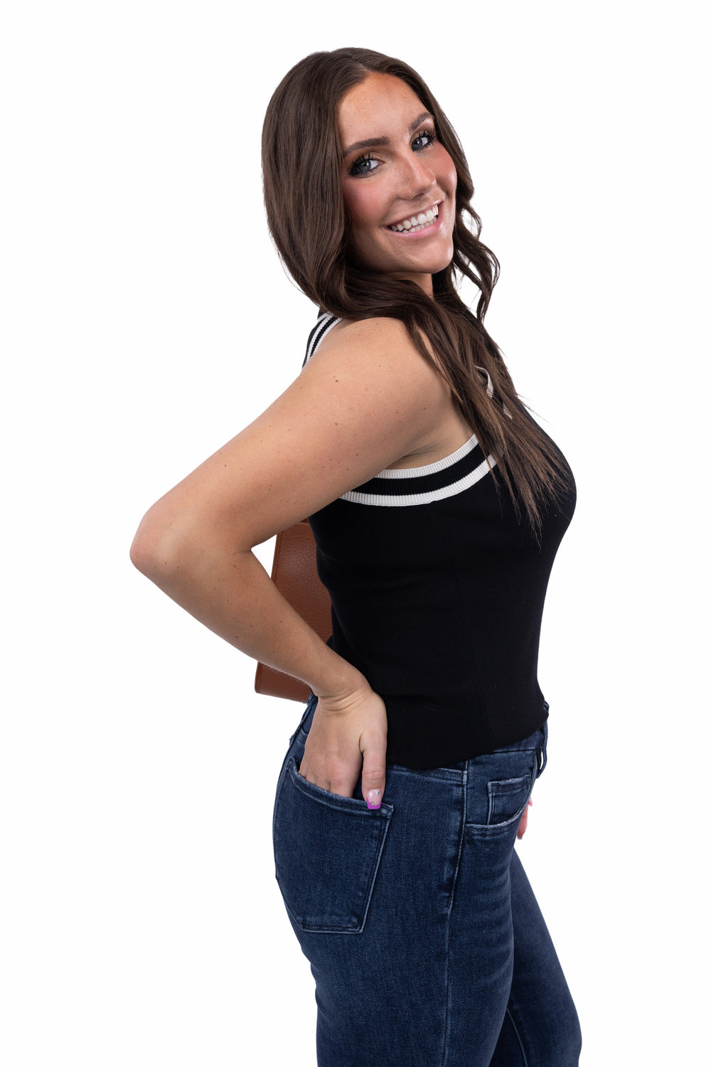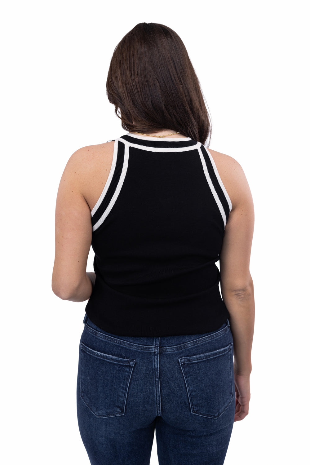 Discover the luxurious elegance of the ALB Custom Maya Sweater Tank Top. This unique tank top exudes sophistication with its ribbed trim and halter style neckline. The ribbed hemline adds a touch of exclusivity to this stylish piece. Elevate your wardrobe and make a statement with this must-have top.