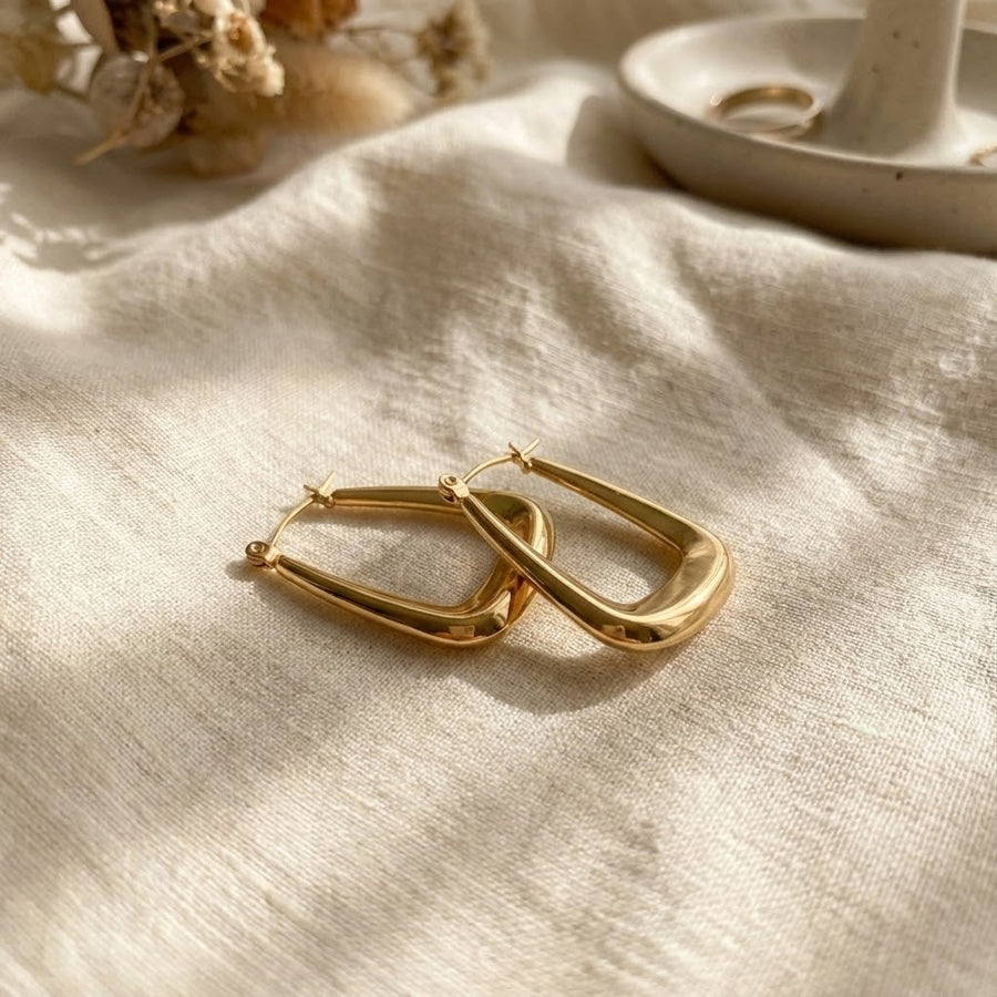 ALB Custom Modern Gold Squared Oval Hoop Earrings *Final Sale*