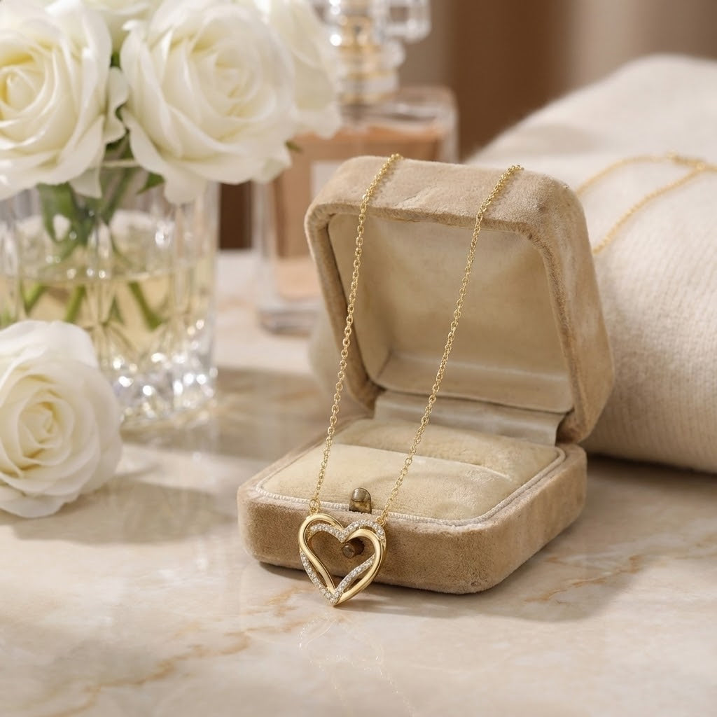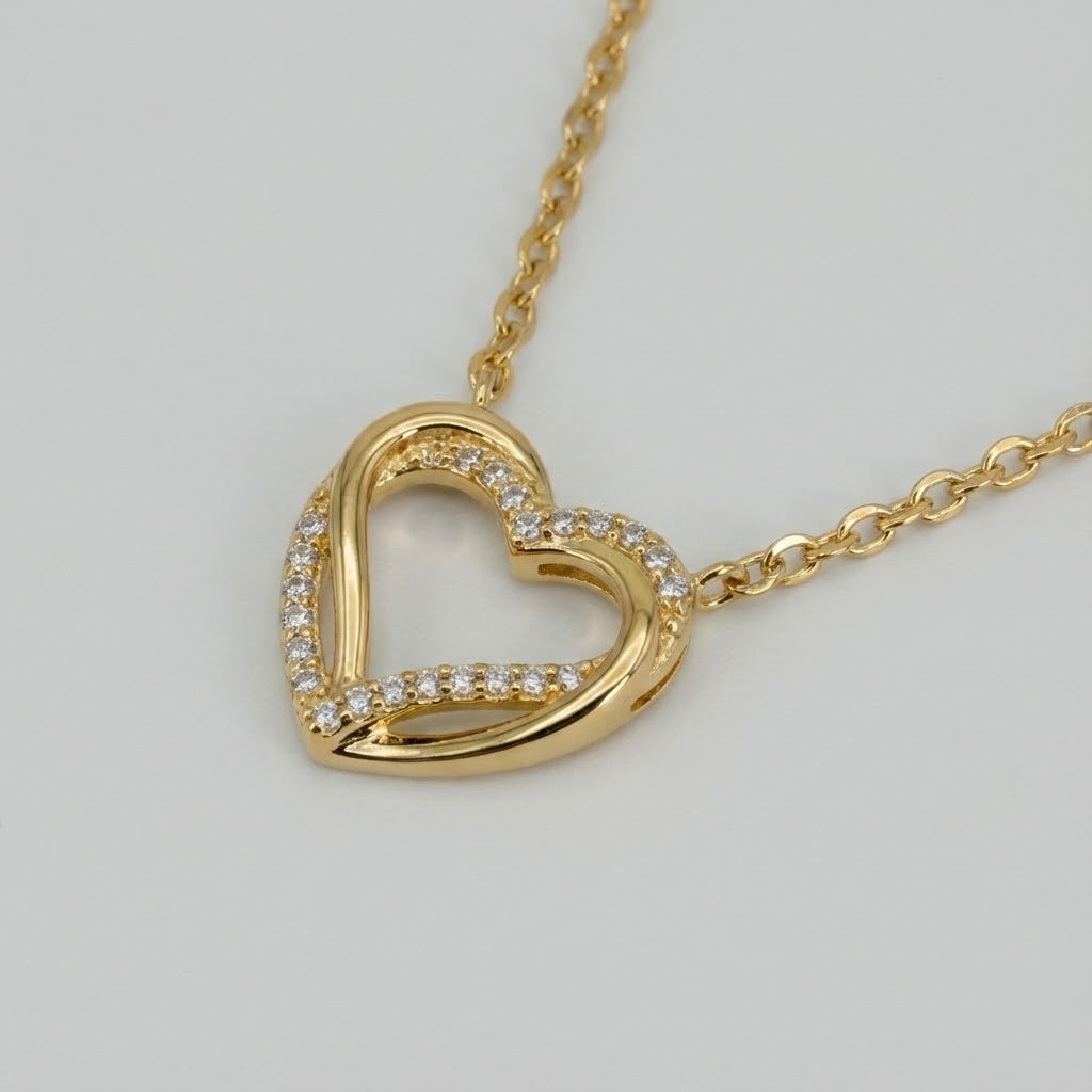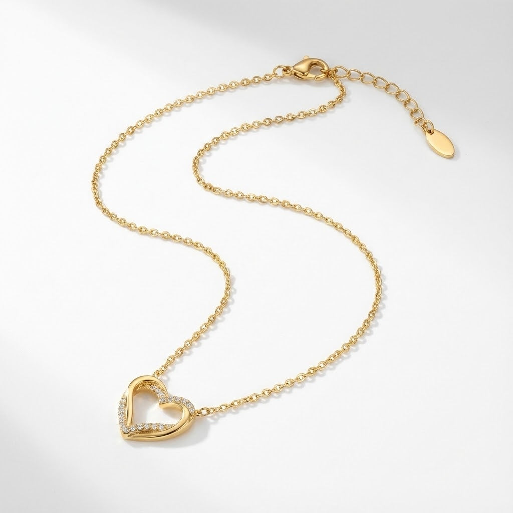 Elevate your everyday style with this elegant ALB Custom Sparkling Double-Layer Heart Pendant Necklace. Crafted from high-quality 18k gold-plated stainless steel, the pendant features an open heart design accented with shimmering zircon stones for a touch of irresistible sparkle.