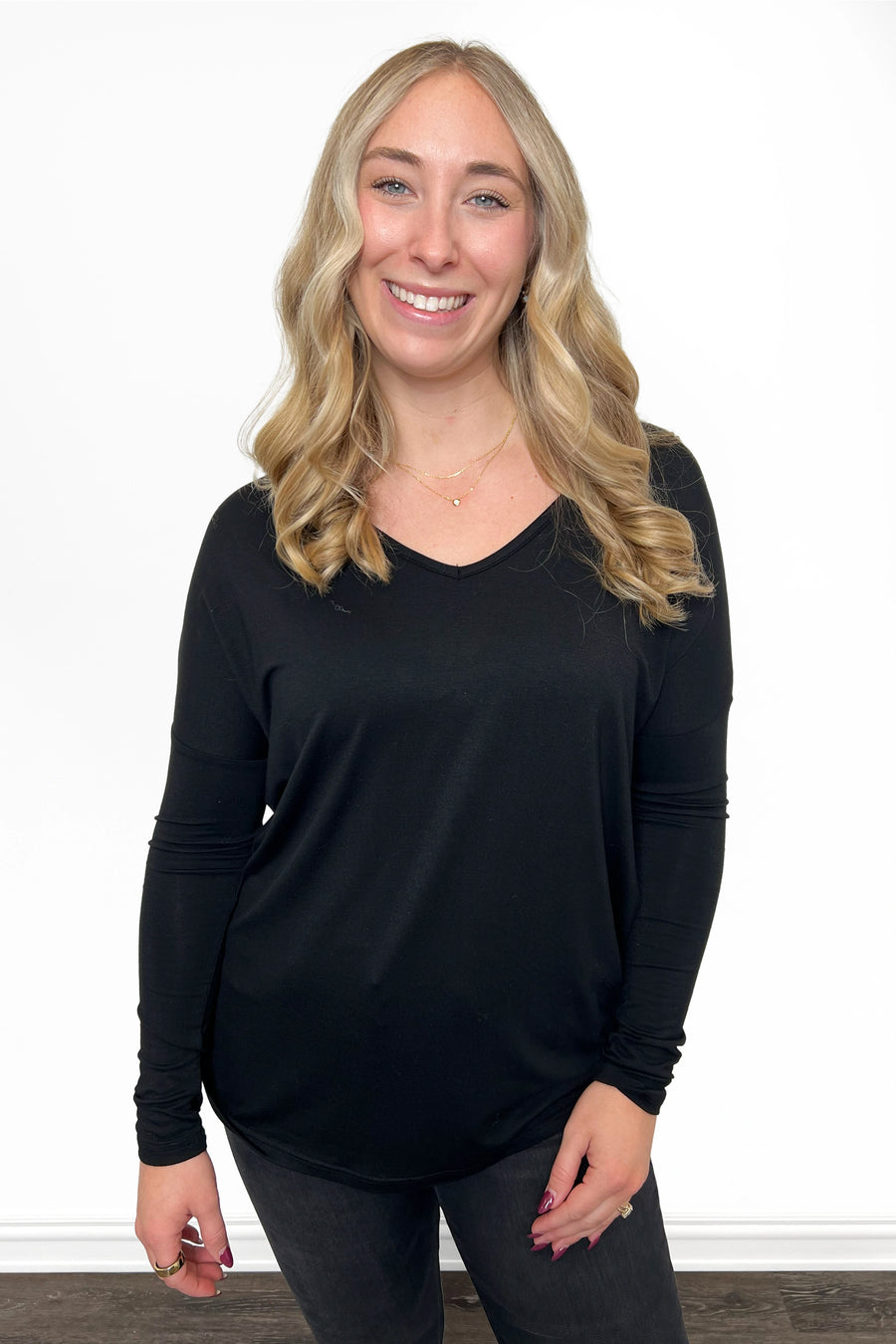 Meet your new favorite layering piece, the ALB Custom Women's Premium Everyday V-Neck Long Sleeve Top.