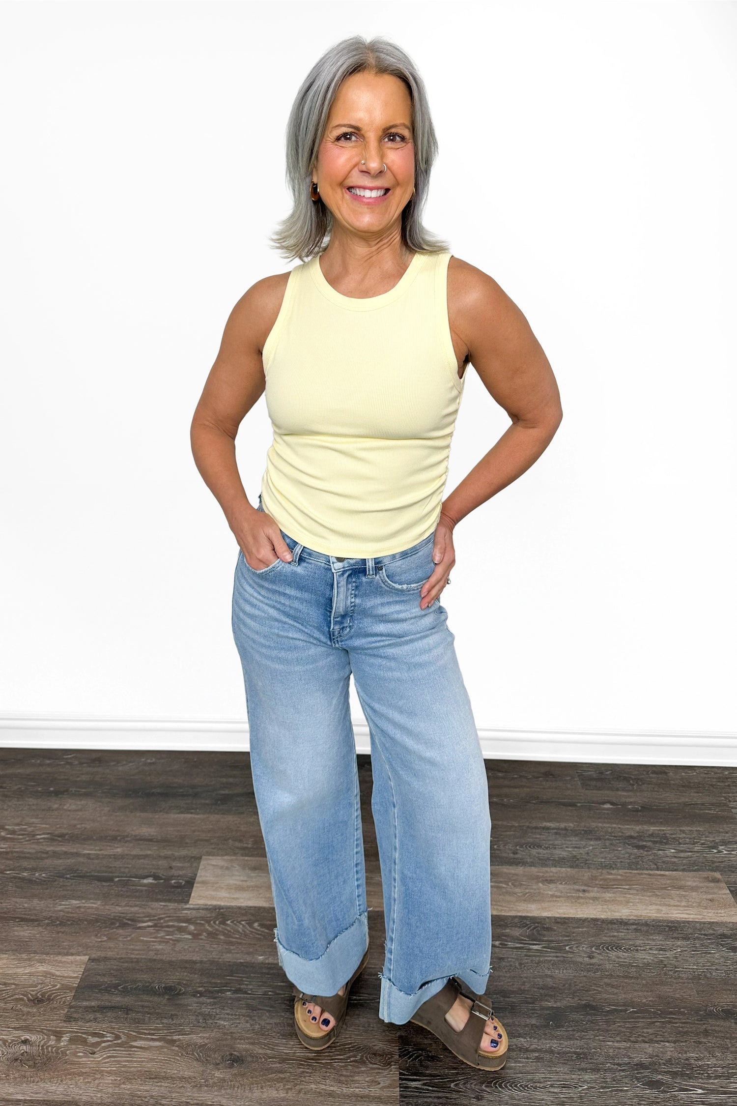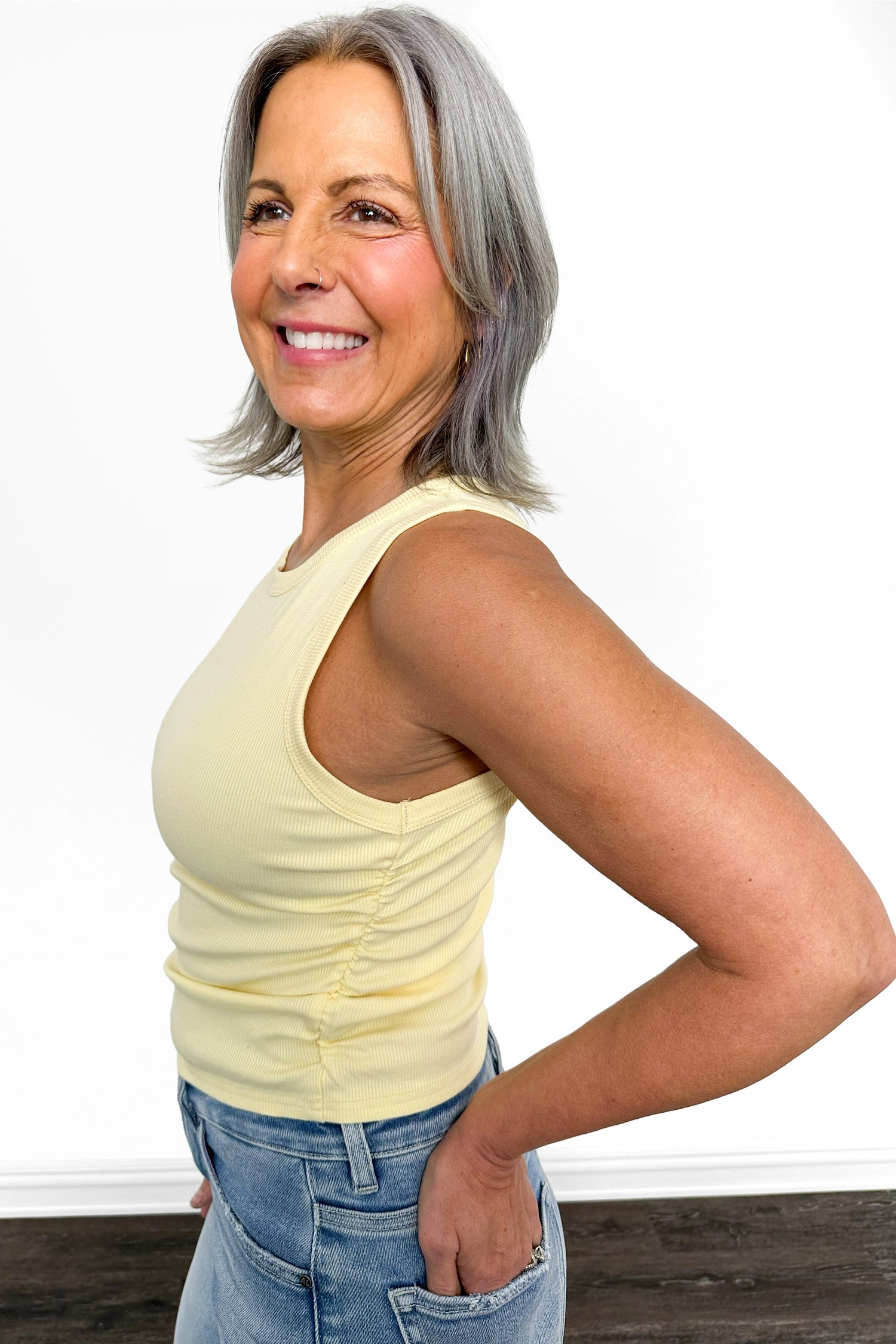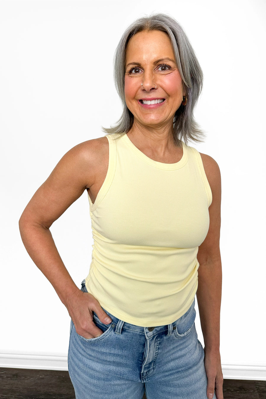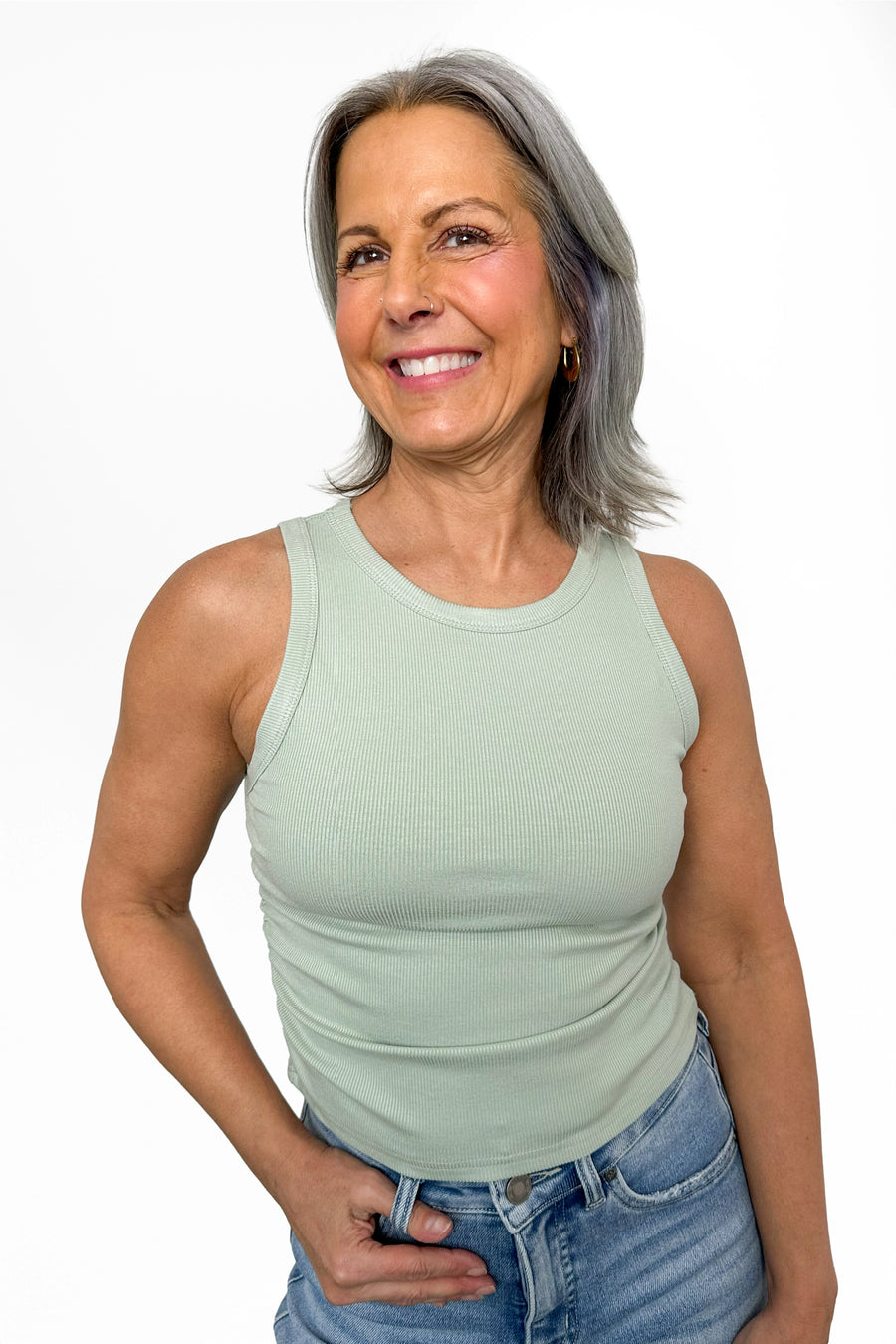 Introducing the ALB Custom Women's Cropped Rouched Tank Top this feminine essential features a form-fitting ribbed fabric that hugs your curves in all the right ways, while the ruched detailing adds dimension and visual interest. Whether you're layering it under your favorite jacket for an trendy look or styling it solo, this cropped beauty works overtime in your wardrobe.