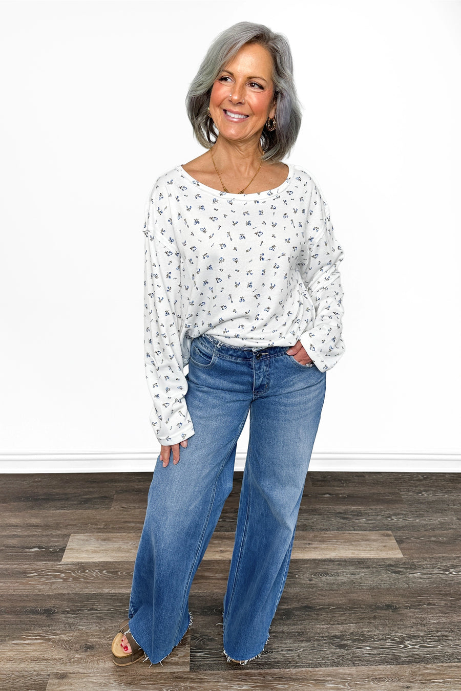 ALB Custom Women's Ditsy Floral Print Long Sleeve Top