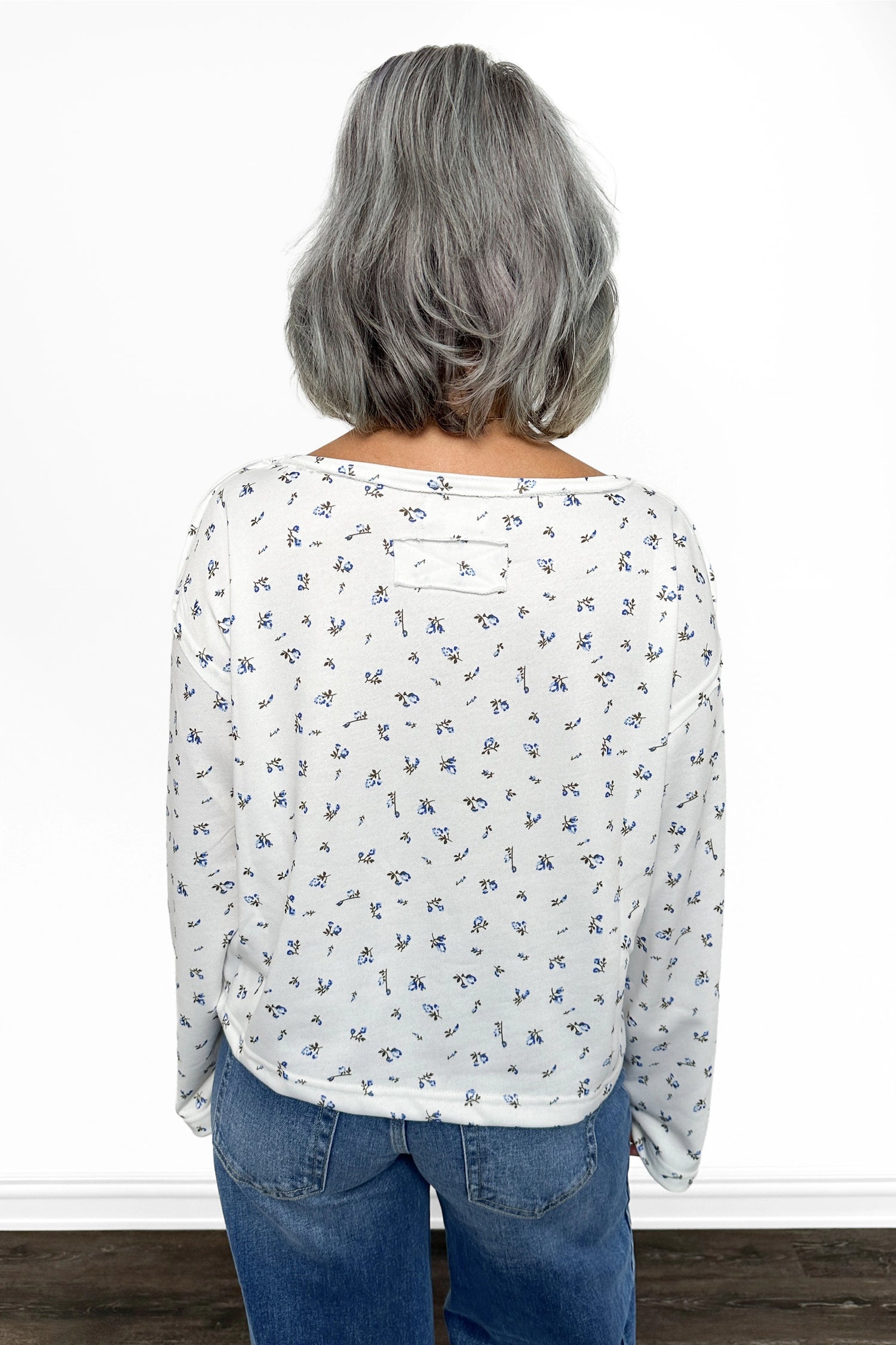 Step into vintage-inspired style with this ALB Custom Women's Ditsy Floral Print Long Sleeve Top. The delicate blue floral print captures retro charm without sacrificing modern comfort, while relaxed long sleeves create an inviting, approachable look. A round neckline frames the face beautifully, and the slightly cropped cut offers flattering proportions that work with virtually any bottoms. A wardrobe staple that brings personality and timeless appeal to your daily style.