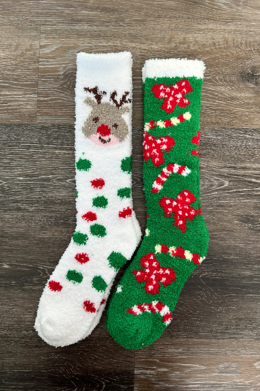 With the ALB Custom Women's Festive Print Fuzzy Socks you'll bring the festive vibes in knee-length comfort. Sink into their softness while vibrant seasonal patterns add a dash of joy to chilly nights. Whether you're curled up by the fireplace with hot cocoa or padding around the house, these fuzzy companions keep your feet toasty warm and your holiday spirit high.
