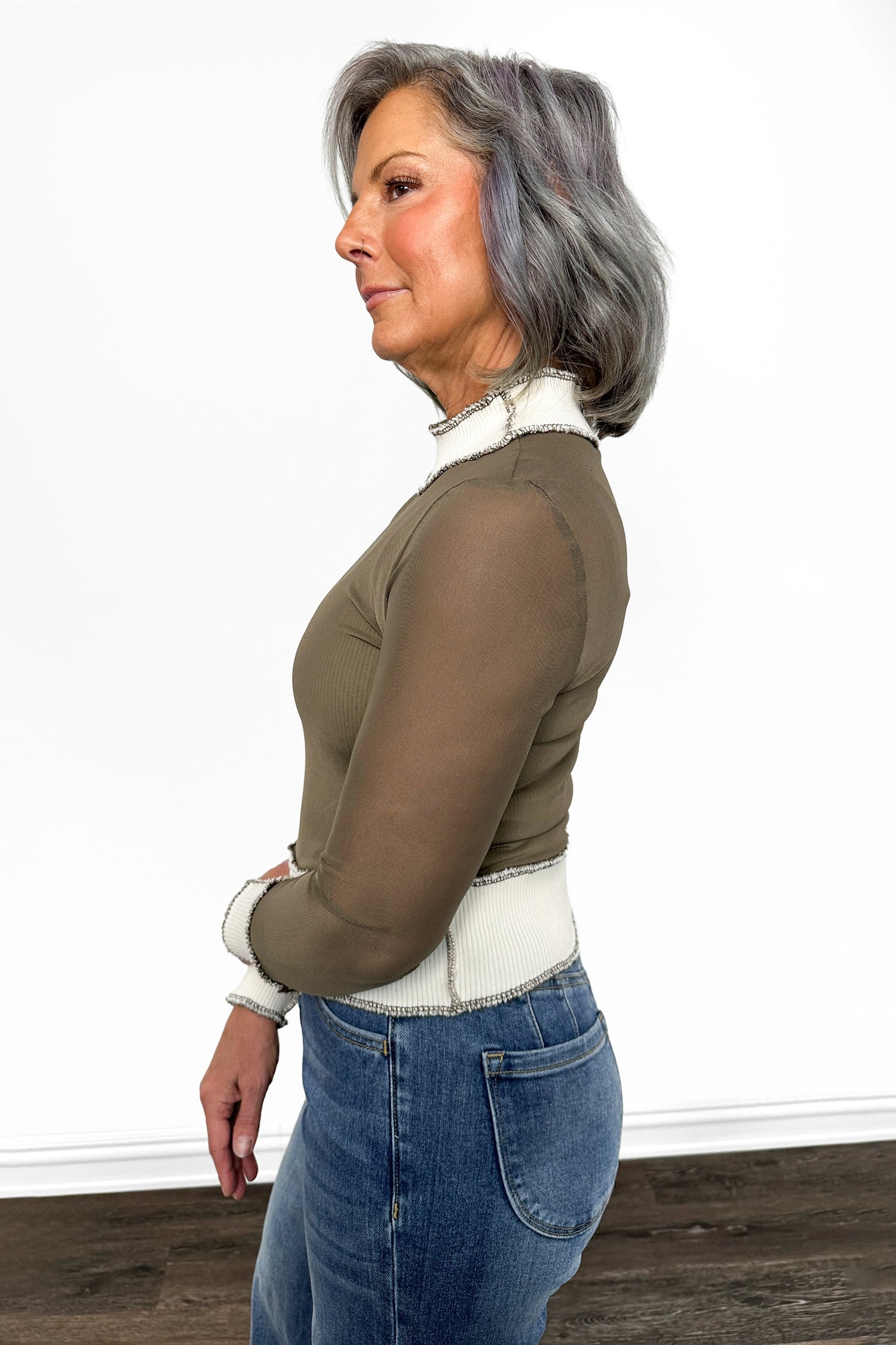 The ALB Custom Women's Lightweight Mesh Long Sleeve Top combines contemporary design with versatile layering potential. Crafted with breathable mesh throughout the body and sleeves keeps you comfortable during layering, while structured ribbed cuffs, hem, and collar provide an intentional finish. Distinctive exposed stitching adds character and craftsmanship that sets this piece apart from ordinary basics. Whether you're dressing up or down, this top delivers the perfect blend of comfort, style, and wearability.