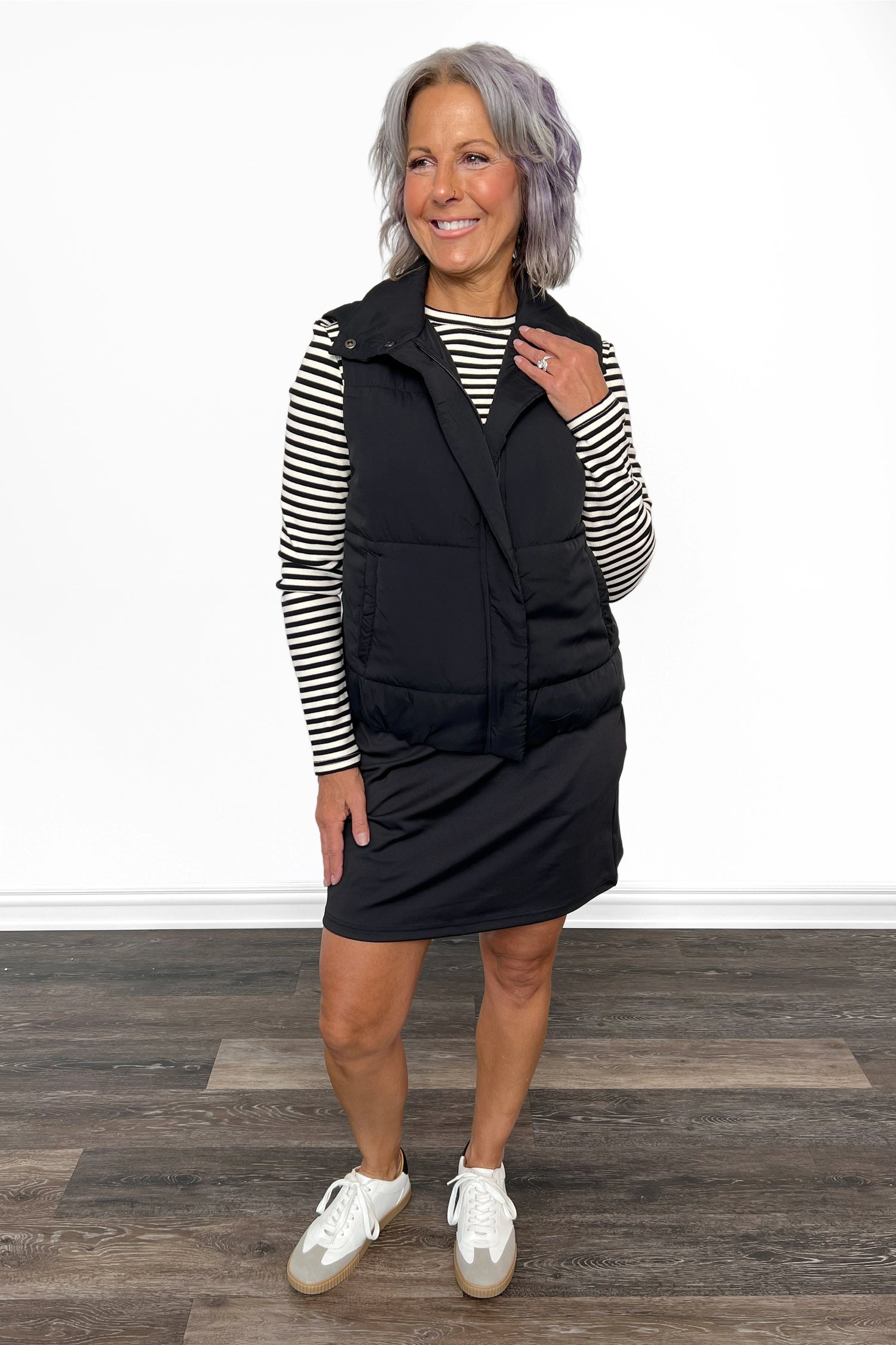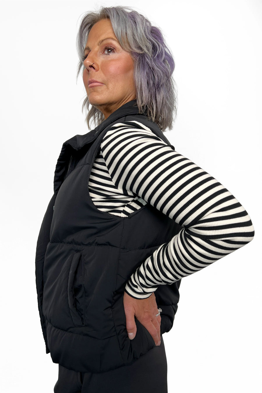 Stay comfortable in any season with this ALB Custom Women's Zip-Up Vest; your new go-to layer for transitional weather. The secure zip closure and a two button collar closure provides customizable warmth, allowing you to fine-tune your comfort as temperatures shift. Ideal for layering over long sleeves with an elastic waistband, this short vest bridges the gap between too cold and overdressed. Its streamlined silhouette works with virtually any outfit, making it a smart investment for a functional, stylish wardrobe that adapts to your lifestyle.