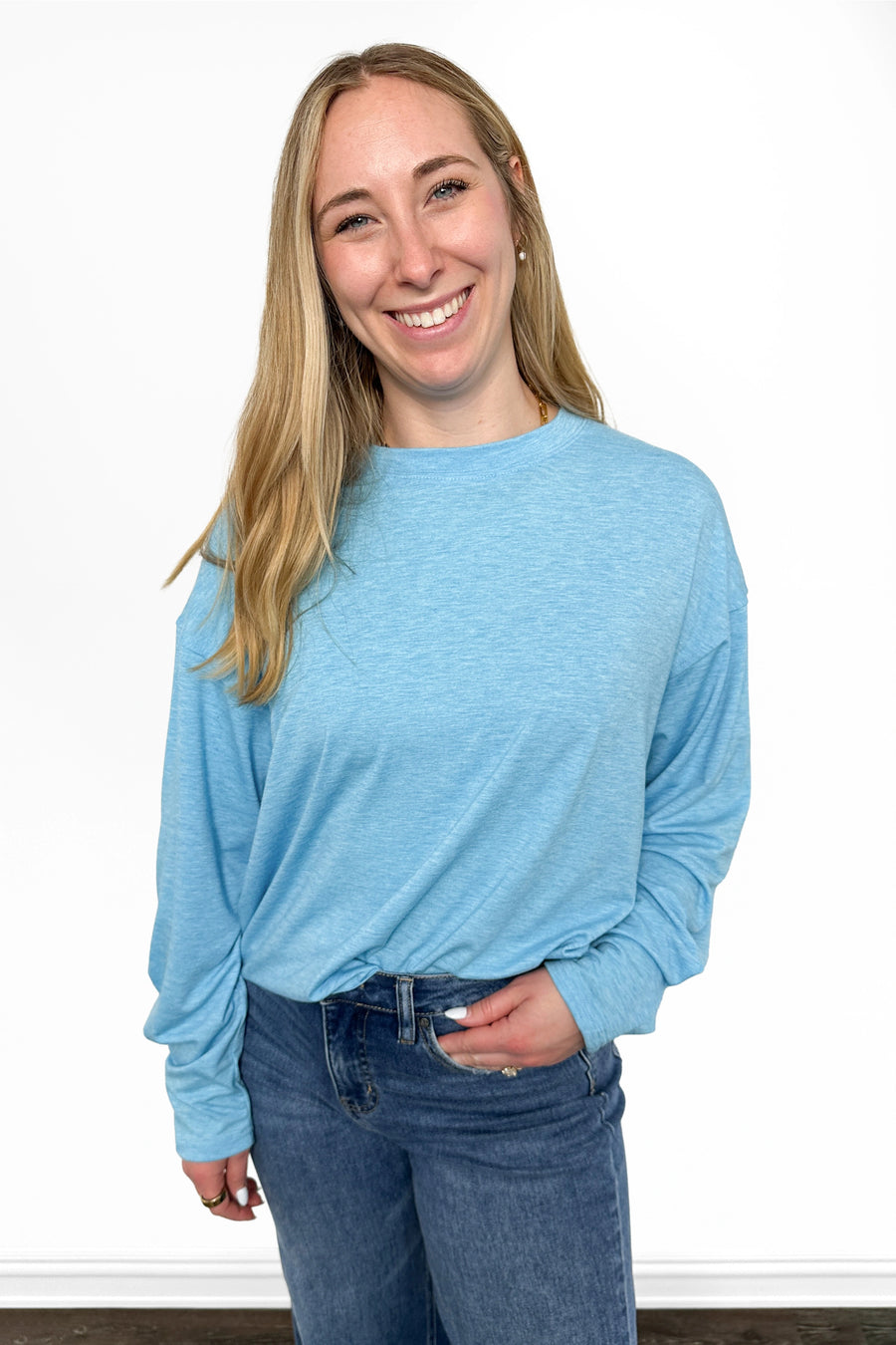 Slip into effortless comfort with our ALB Custom Women's Oversized Round Neck Long Sleeve Top; the ultimate wardrobe staple that doesn't compromise on style. Designed with a relaxed, flowy silhouette and slightly cropped length, this top is your go-to for lazy days at home or quick errands around town. Choose from our range of gorgeous heathered colors to express your vibe and match whatever mood strikes.