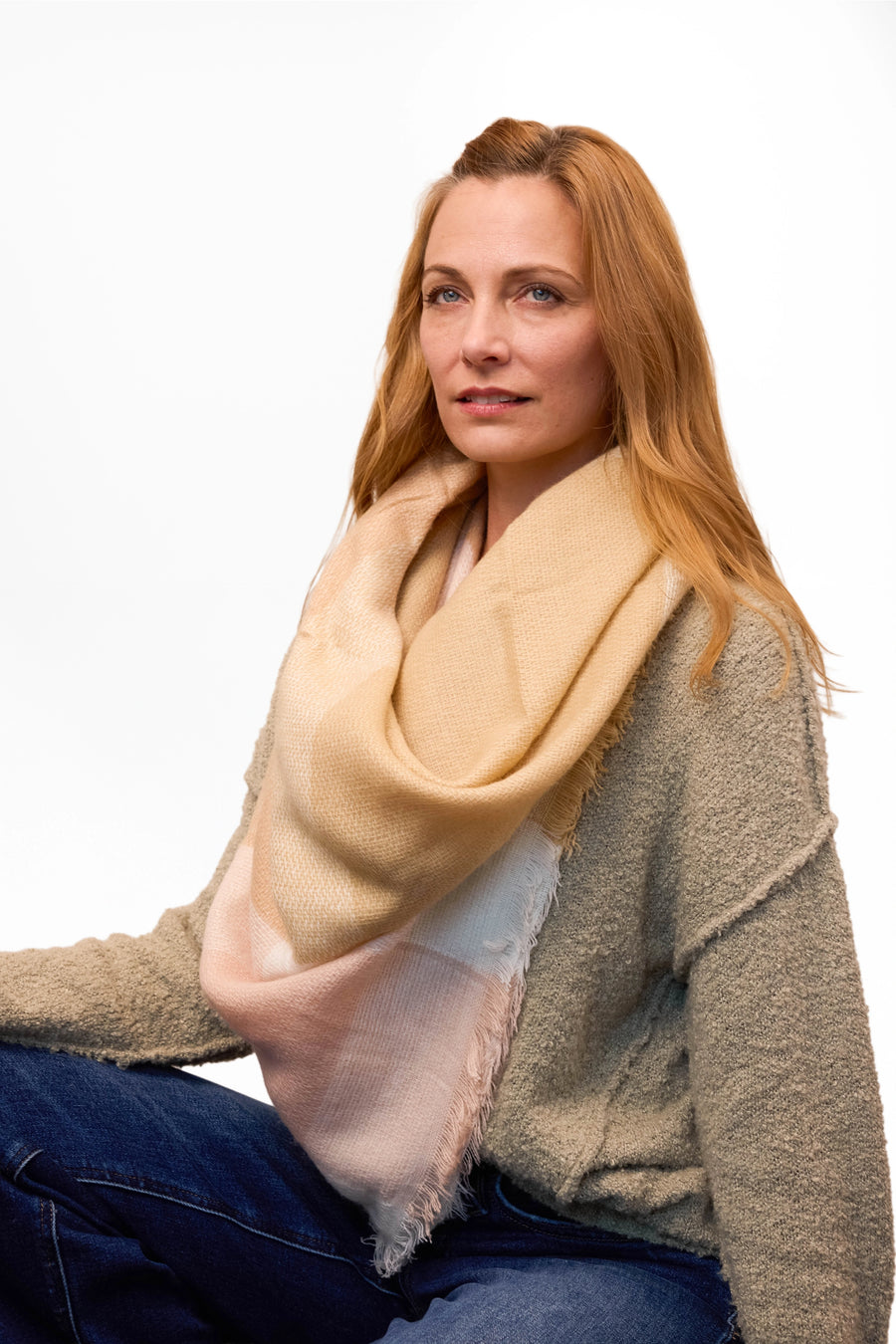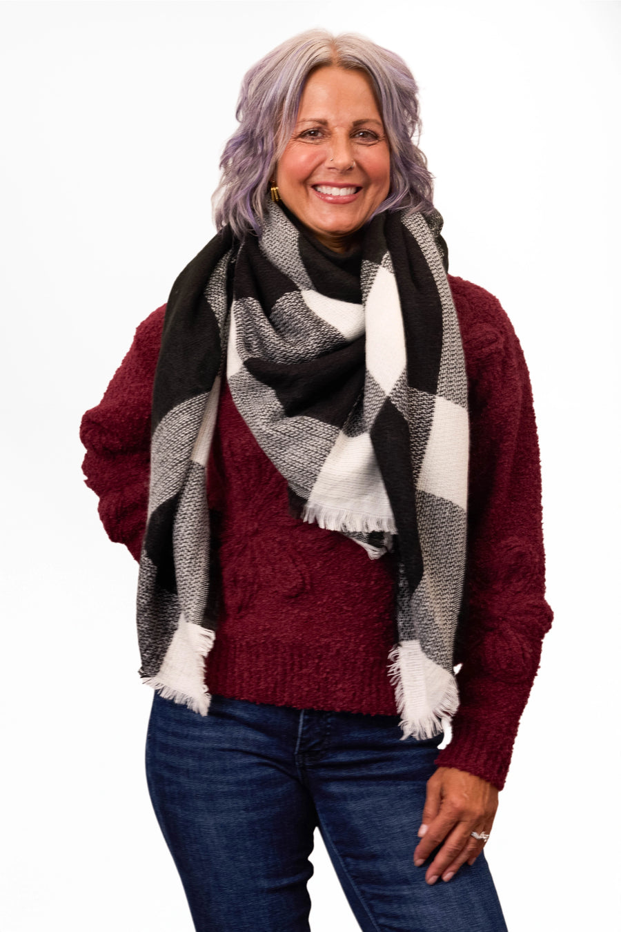 Stay cozy in style with the ALB Custom Women's Plaid Woven Scarf. Featuring a timeless plaid pattern and a luxuriously soft, cashmere-like feel, this scarf is perfect for layering in cooler weather. Finished with subtle frayed edges for a relaxed, modern touch.