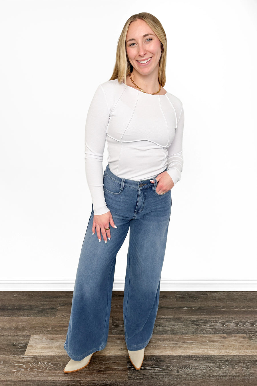 ALB Custom Women's Ribbed Exposed Seam Long Sleeve Top