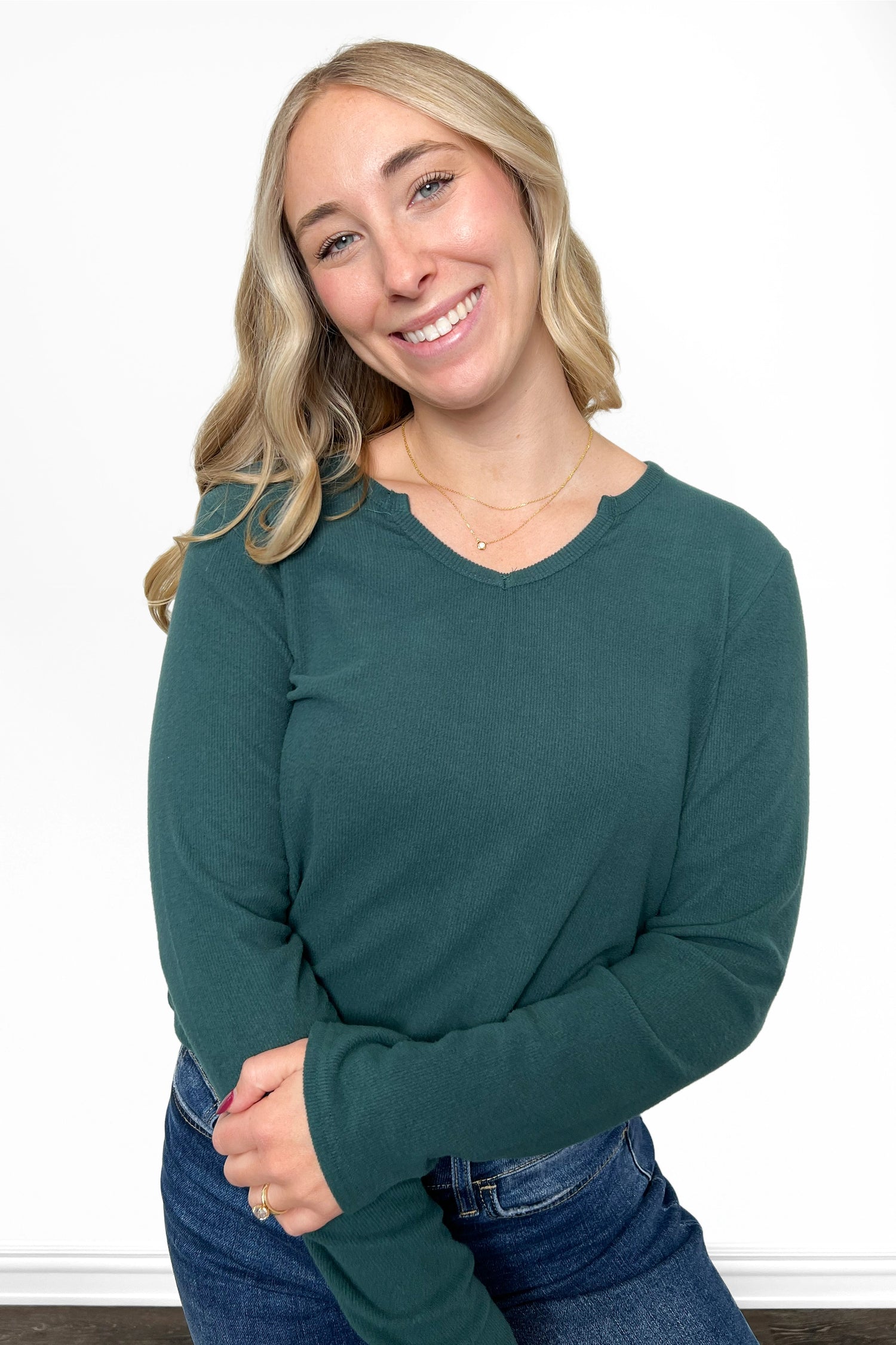 ALB Custom Women's Ribbed Notched Neckline Top