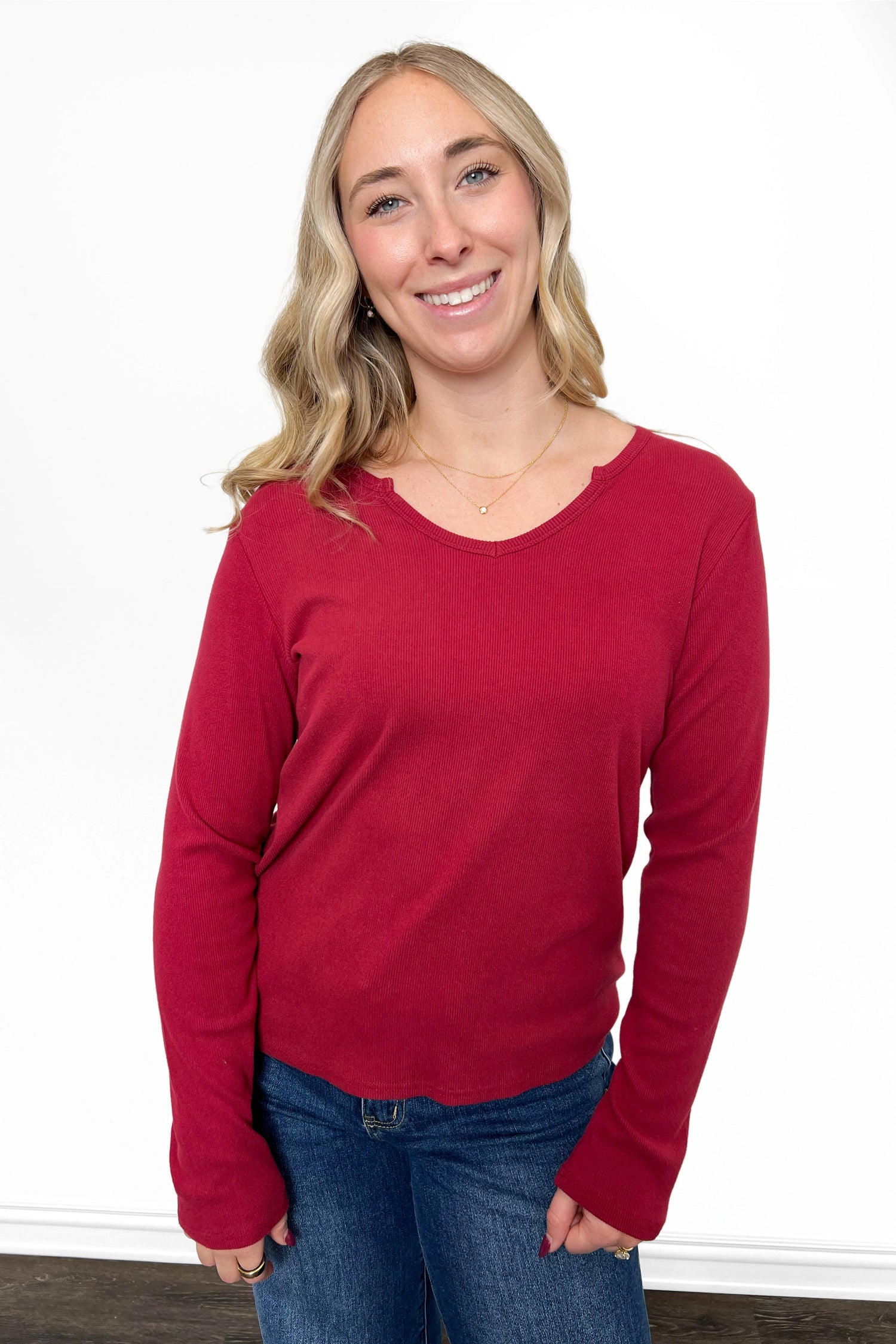 The ALB Custom Women's Ribbed Notched Neckline Top offers a silky, high-stretch ribbed knit that feels soft against your skin and moves with you while maintaining its shape. The notched neckline keeps it modern, and the straight hem keeps the fit polished and flattering.