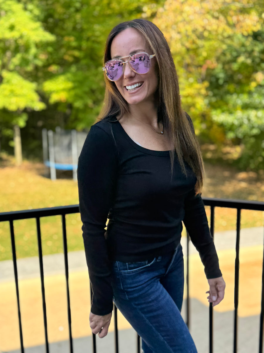 Lightweight and versatile, this top layers beautifully under your favorite jacket or stands on its own for an effortlessly polished look. With its silky-soft texture and everyday ease, it’s a piece you’ll reach for again and again.