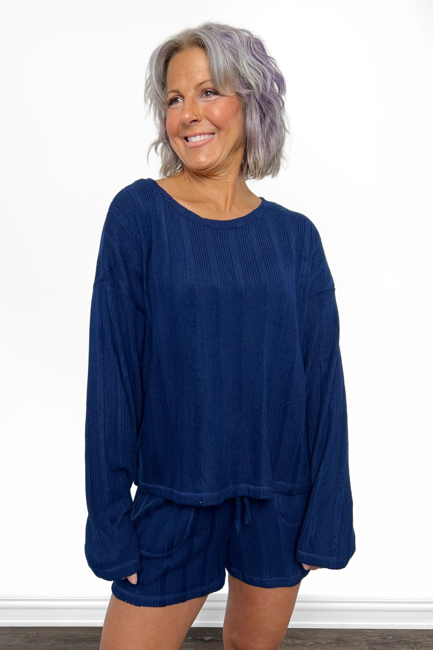 Step up your everyday comfort with the ALB Custom Women's Striped Long Sleeve Top and Shorts Set that effortlessly transitions from relaxation to style. The long sleeve top feature eye-catching vertical fuzzy stripes that adds depth and movement, while the matching fuzzy striped shorts boast a comfortable drawstring waistband and generous pockets, a rare find for functional fashion. Whether you're lounging at home or mixing pieces with your existing wardrobe, this set delivers the perfect balance of comfort and contemporary style. Designed for those who refuse to compromise on either fit or fashion.