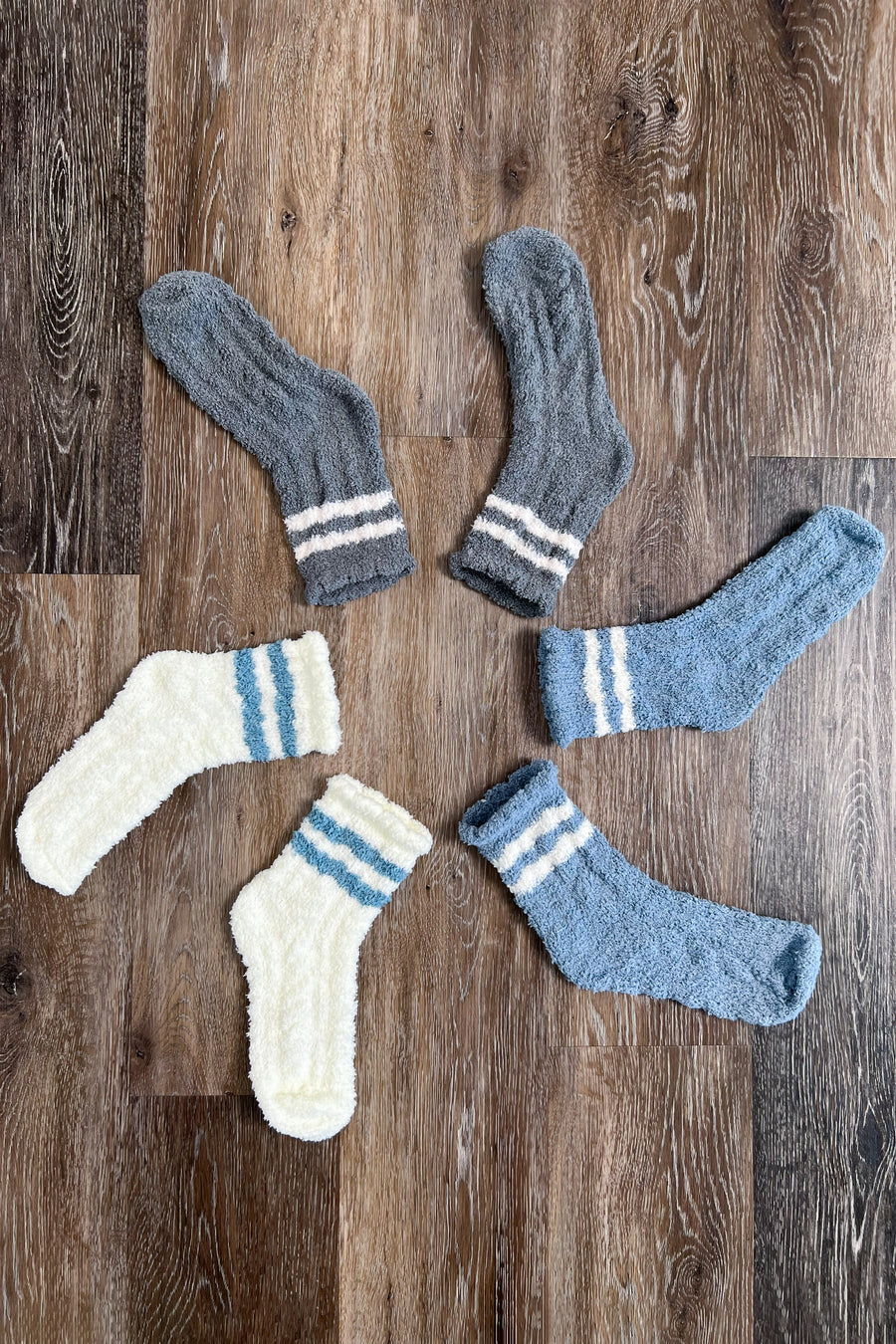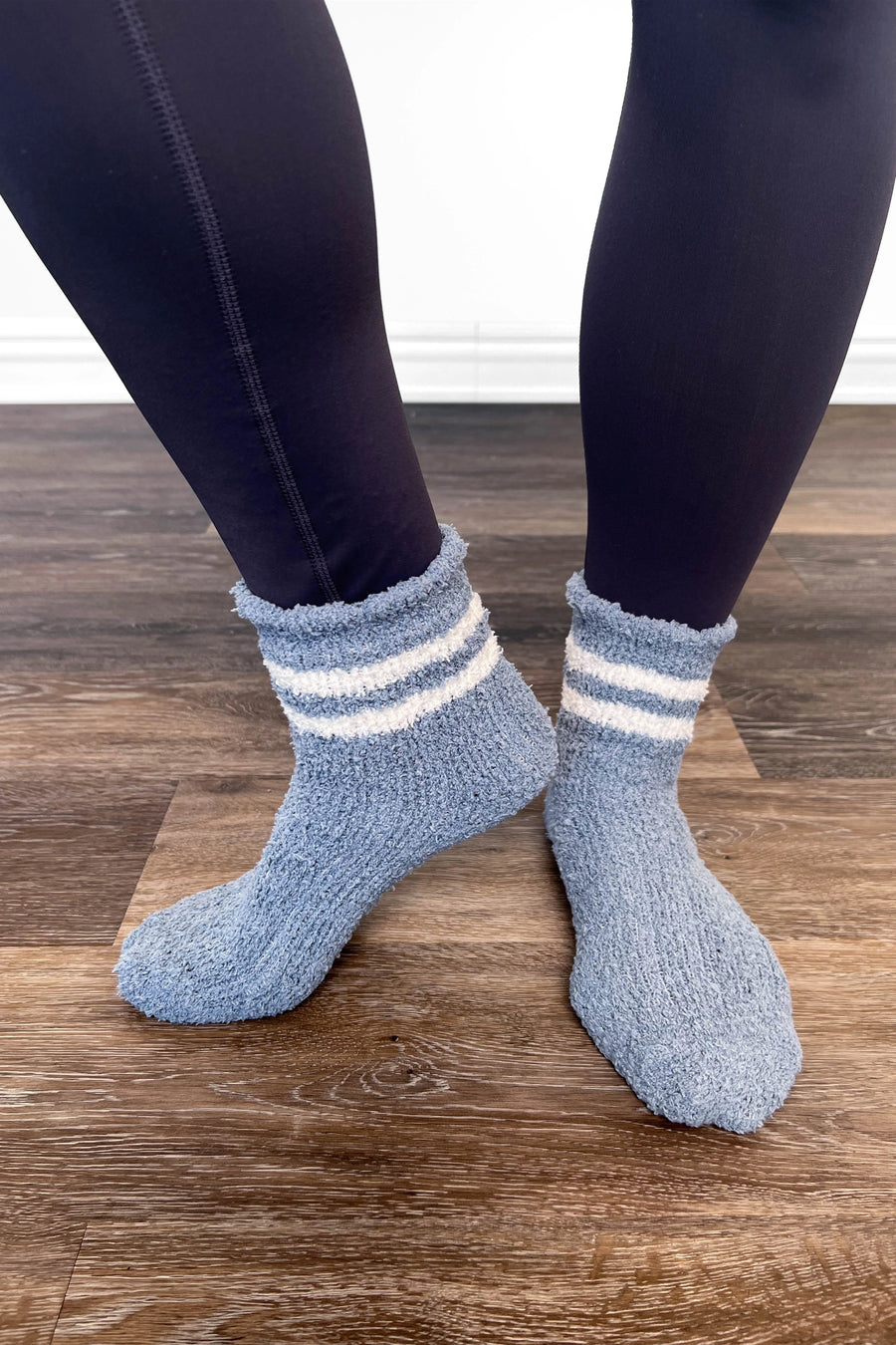 Wrap your feet in the ultimate comfort with ALB Custom Women's Striped Plush Socks. Crafted from soft, fuzzy material, these mid-crew socks deliver all-day warmth and coziness. The contrasting color dual stripes add a touch of style while the mid-length cut pairs perfectly with everything keeping you warm without overheating. Whether you're lounging at home or staying active, these plush socks are your go-to choice for happy, warm feet.