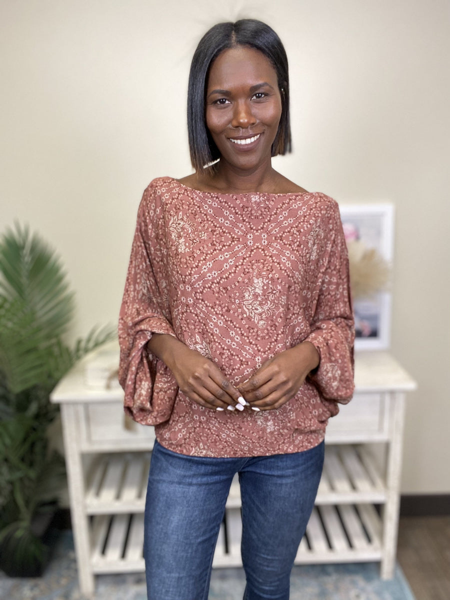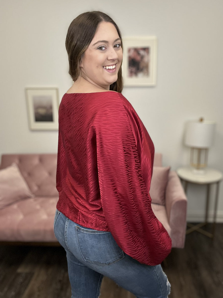 The All Ashore Top by 143 Story is a a beautiful satin zebra print blouse featuring a playable boat neckline, dolman style long balloon sleeves and an elastic waistband. Pair with your favorite denim or skirt for a little extra flirty outfit! The All Ashore Top is perfect for any occasion to dress up or down!