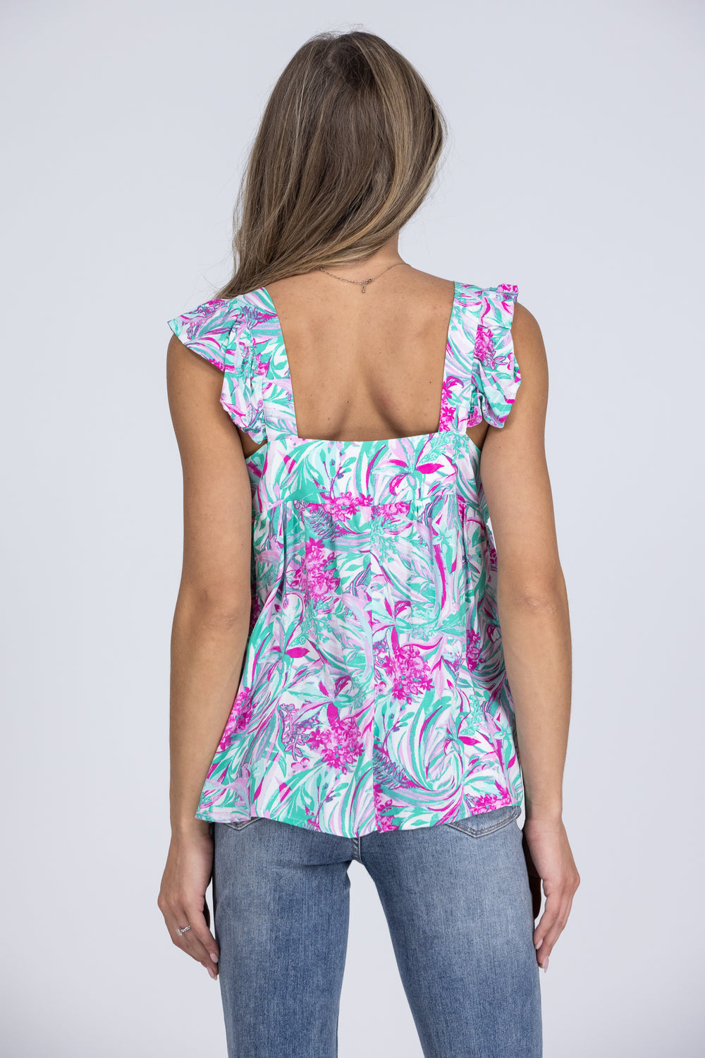 This beautiful Savanna Jane embroidered top is all you, girl! The All On You Top from Andree by Unit is so fun and vibrant for the spring and summer! This top is going to style perfectly for any tropical vacay or any day you want to feel like you are on a tropical vacay. The All On You Top features a beautiful print, flutter sleeves, beautiful Savanna Jane embroidery and a square neckline. Non sheer, woven.