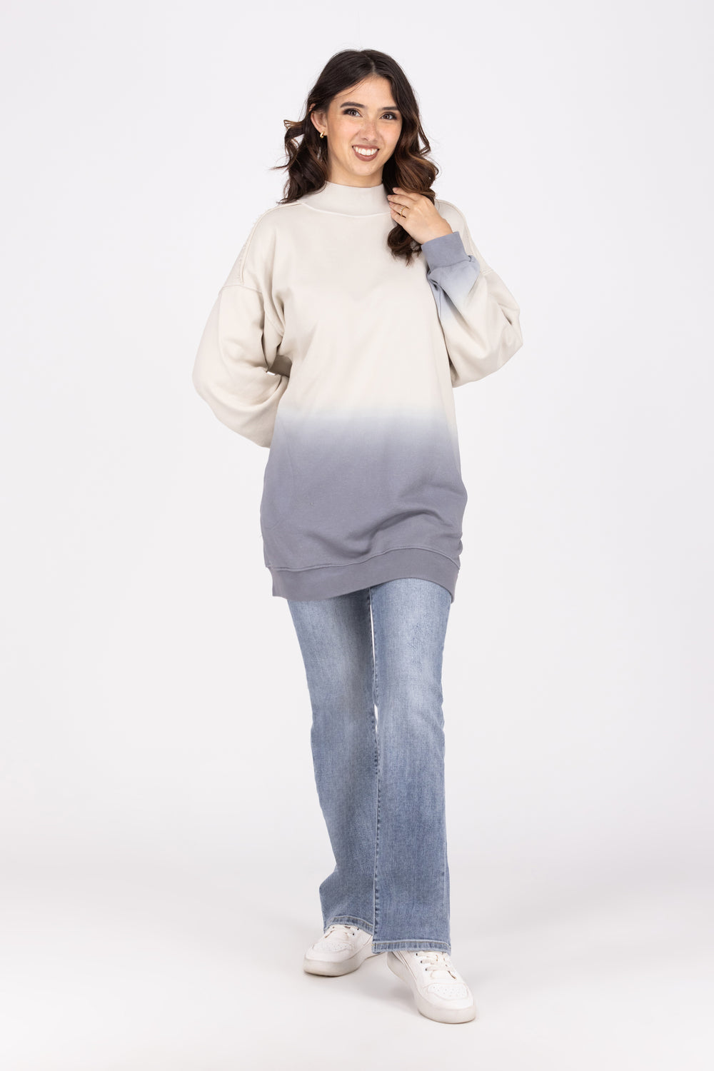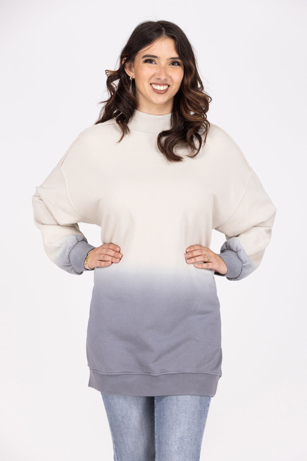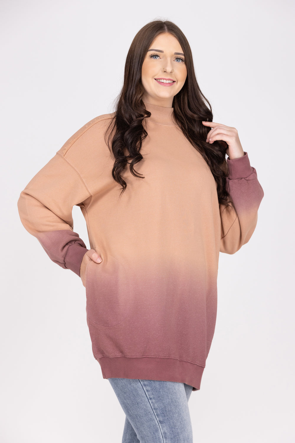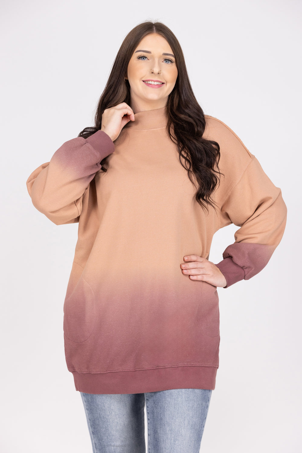 You are going to have some amazing days ahead with The Amazing Days Ahead Sweatshirt by Easel at your disposal! It's just so cute and comfy! It features a ribbed mock neckline, pullover style, fun ombre tie dye design, side pockets, long balloon sleeves with dropped shoulders, and a loose fit with a slouchy silhouette. These perfect colors are perfect for any casual summer spring and even fall day! It is also super versatile and can be worn as a dress on a cozy day!