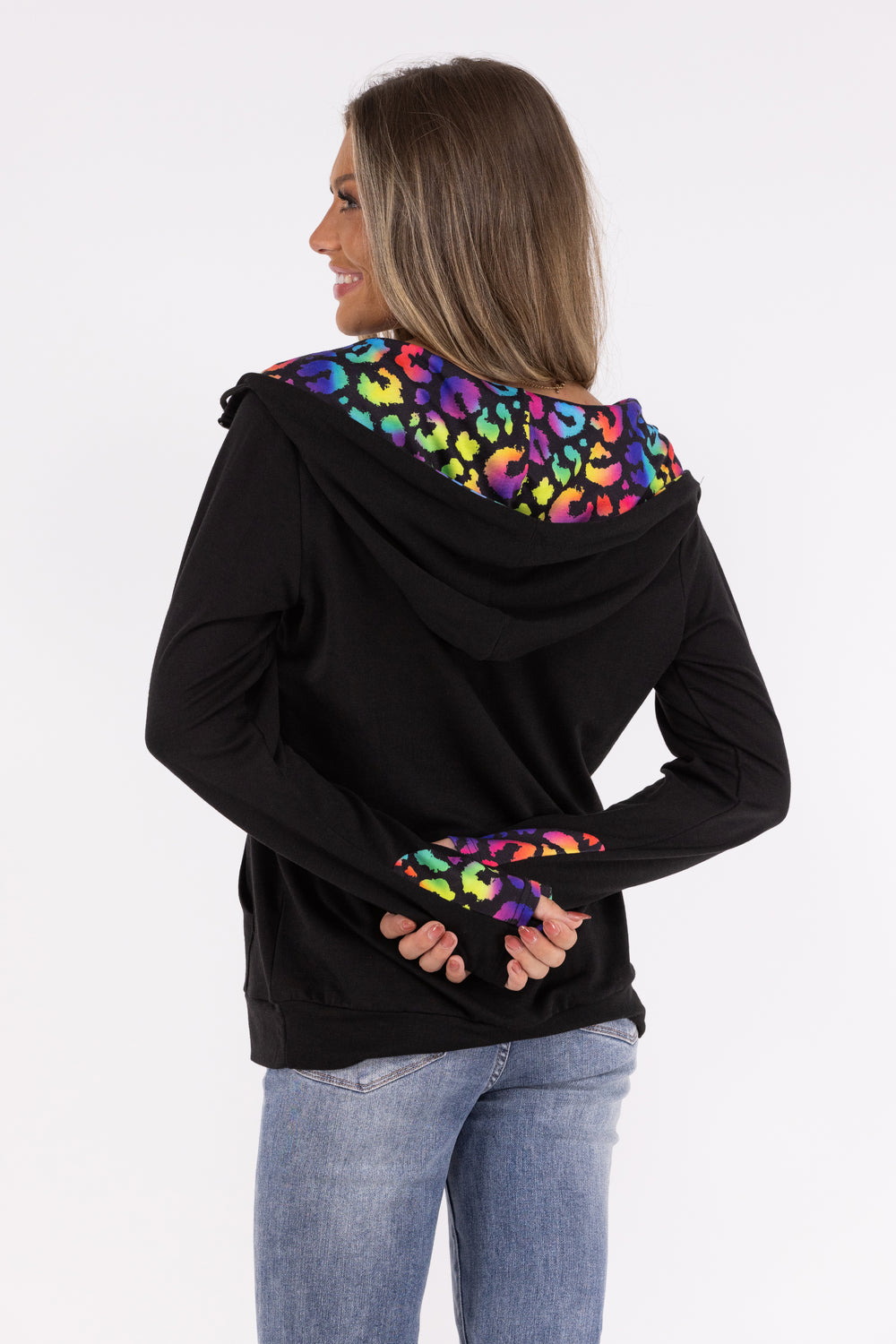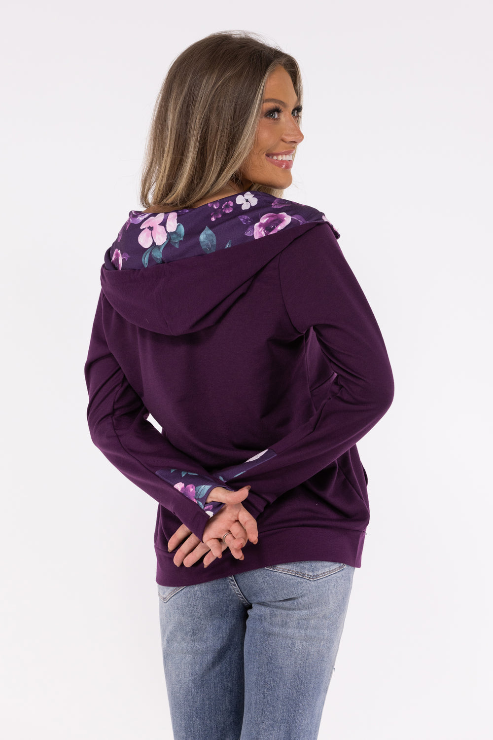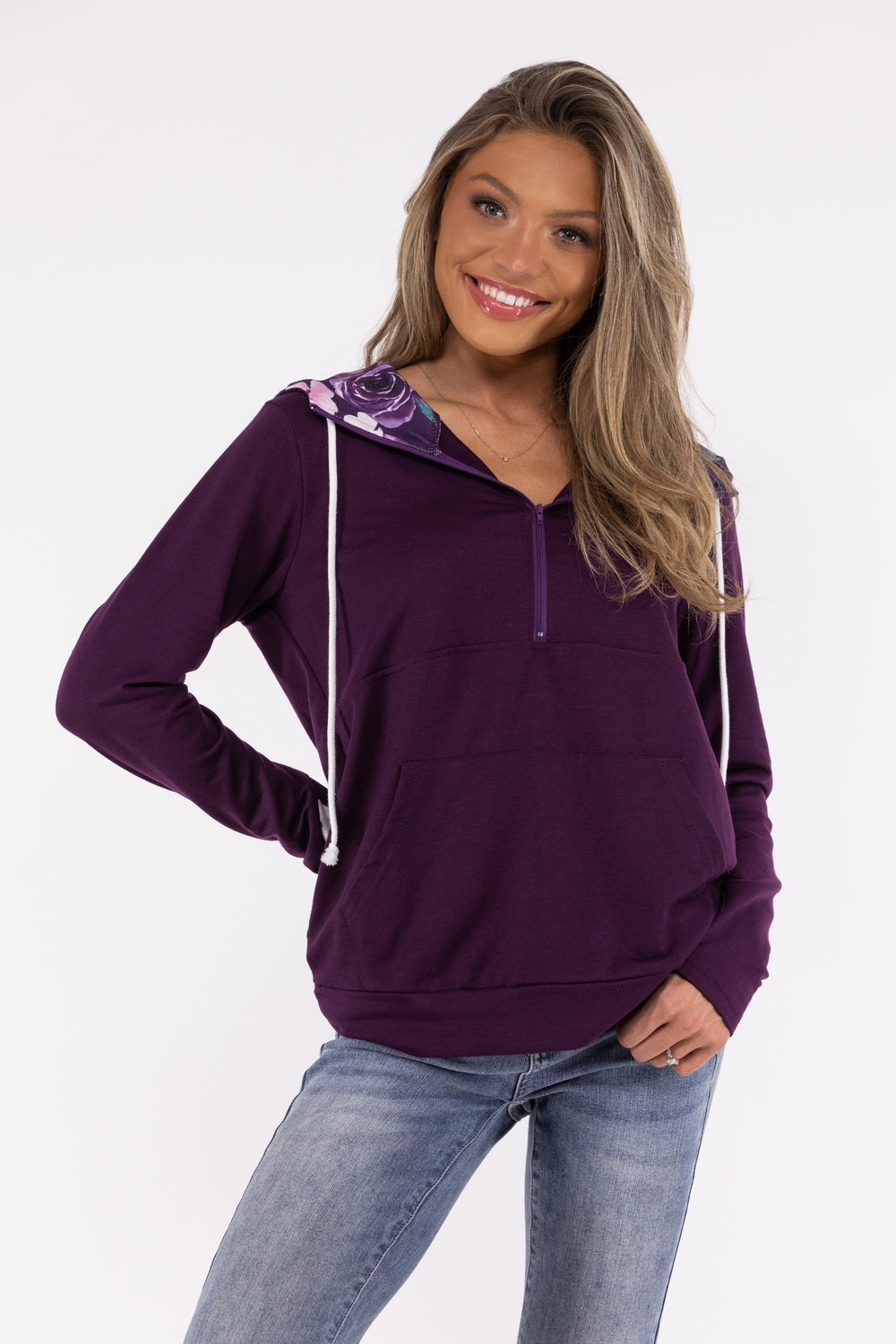 The Audre Hoodie from Shirley & Stones is a fun twist to your everyday hoodie! Each color has a different pattern inside the hood and on the sleeve. They feature a 1/2 zip closure, functioning drawstrings, front pouch pocket, and hidden thumb holes. Pair with leggings or denim for a fun start to your day!