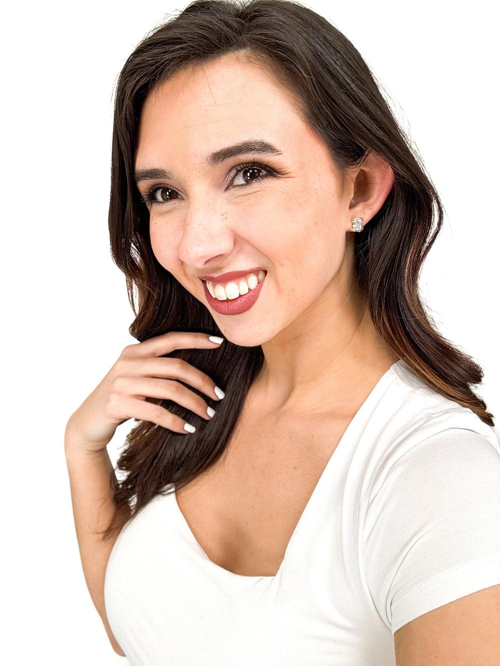 Introducing the B.b. Lila Bling By Bling Earrings. These sophisticated earrings feature a sparkling square cubic zirconia diamond stud in your choice of gold or silver. Add a touch of luxury to any outfit.