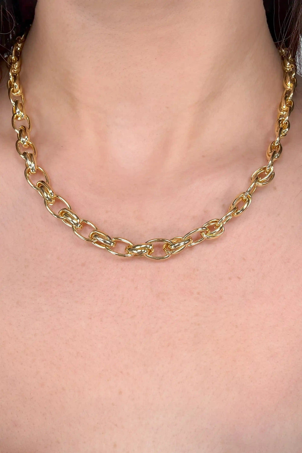 Elevate your style with the B.b. Lila Boujee Necklace. Crafted with large gold or silver links, this 16-inch necklace adds a touch of glamour to any outfit. With a 2-inch extension, you can adjust the length to suit your desired look. Make a statement and be boujee with this luxurious piece.