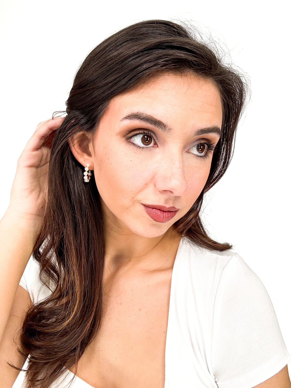 Indulge in luxury with our B.b. Lila I Vow Earrings. These elegant earrings feature gold or silver huggie hoops that are delicately lined with lustrous pearls. Make a statement of sophistication and style with these exclusive earrings.
