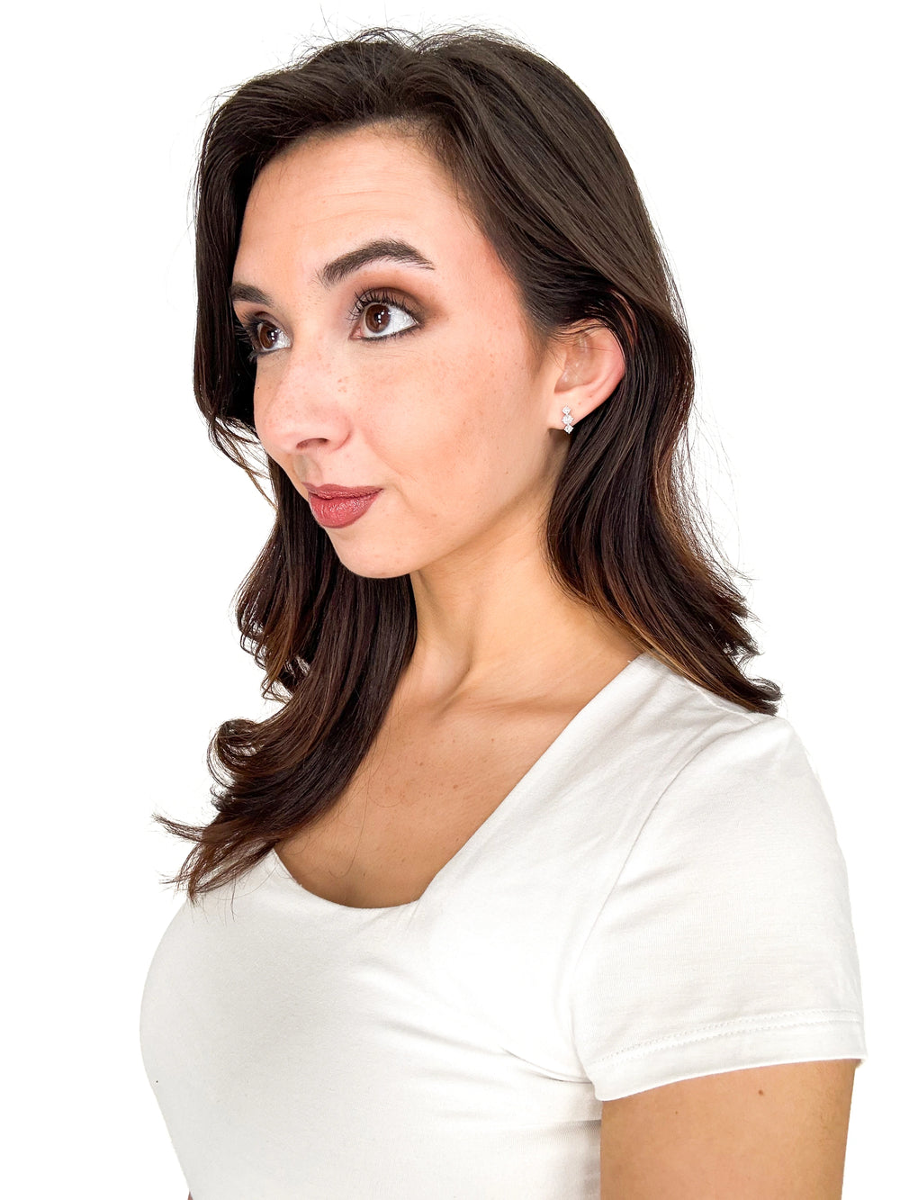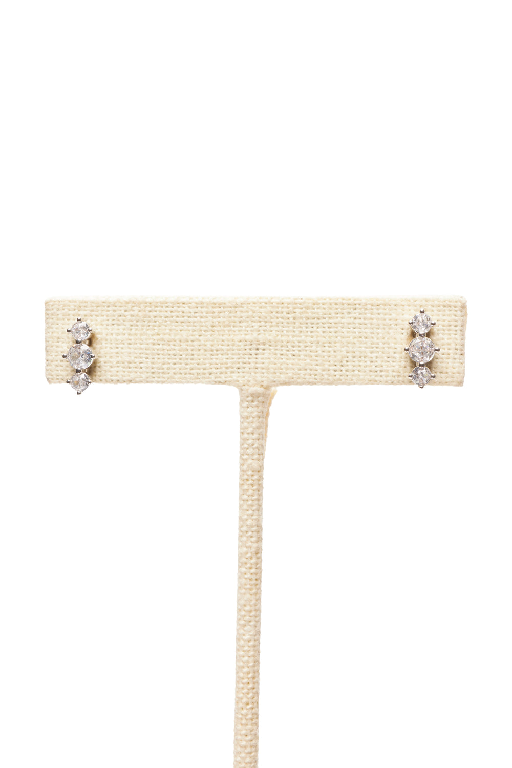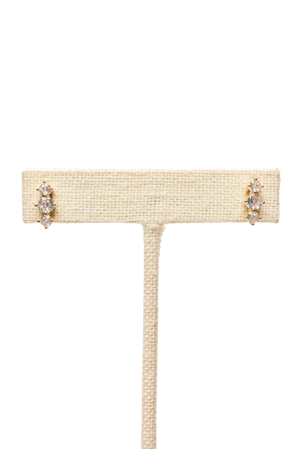 Introducing the B.b. Lila These Three Have My Heart Stud Earrings. Featuring a beautiful triple cubic zirconia diamond stud, these earrings will become your new go-to accessory. Perfect for both casual and formal occasions, these earrings are sure to capture attention and steal hearts.