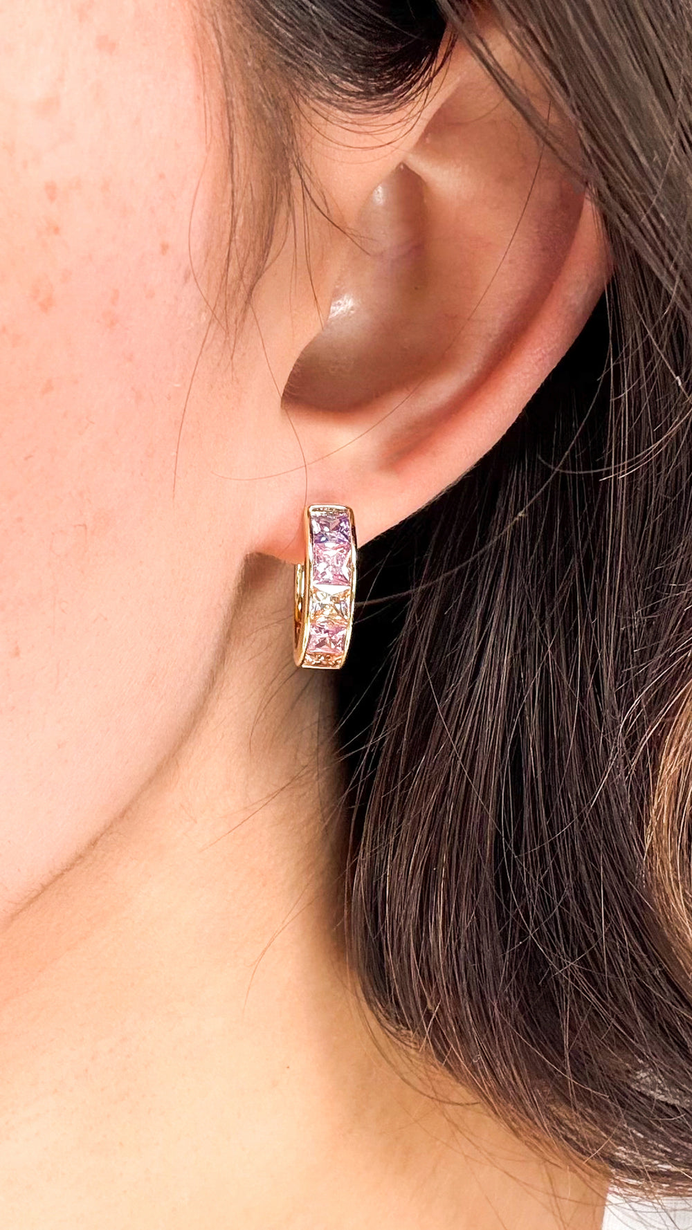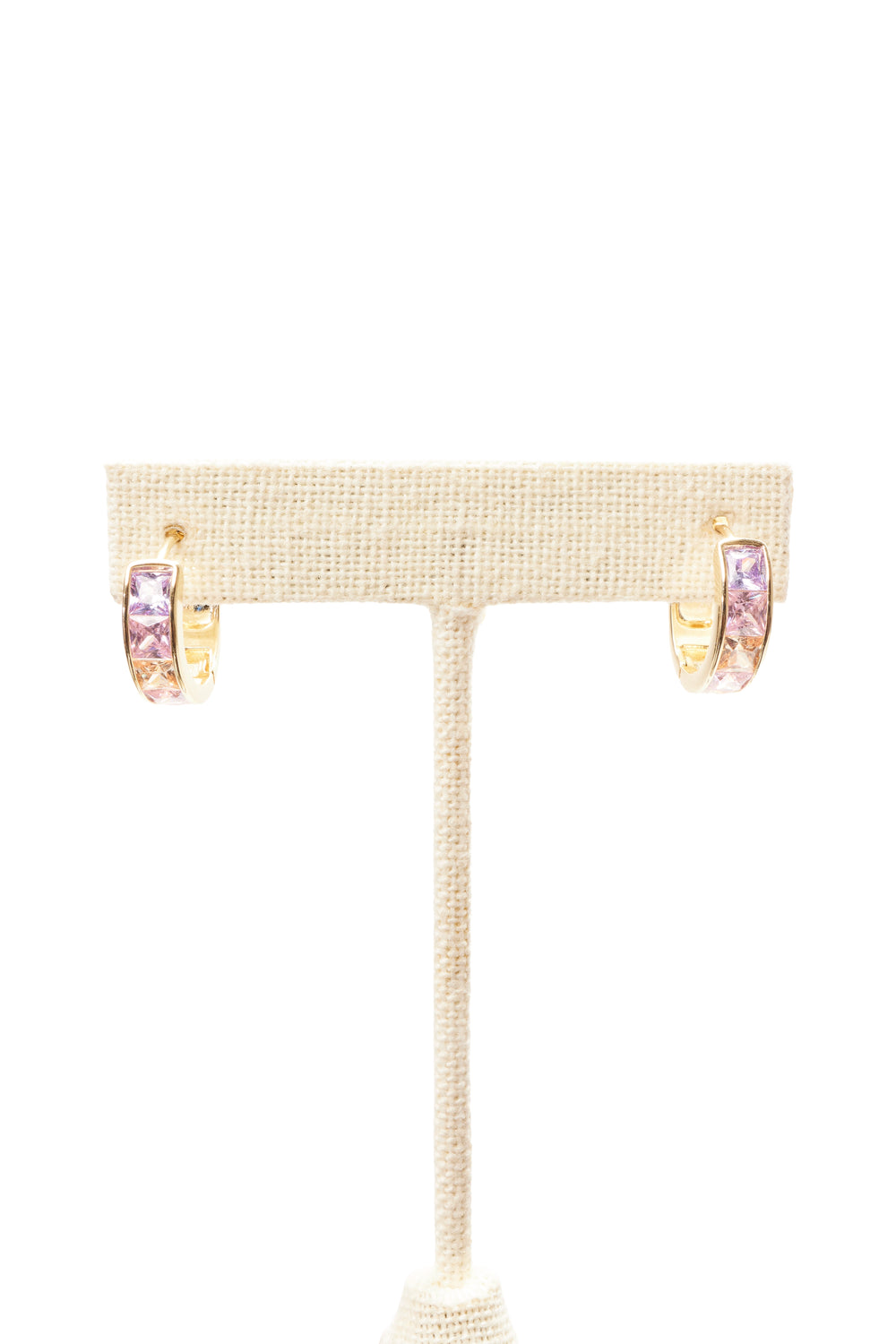 These exquisite B.b. Lila Yes Ladies Earrings are the epitome of luxury. Adorned with multicolored cubic zirconia diamonds, they add a touch of elegance to any outfit. The huggie style ensures comfort and security, making them perfect for any occasion. Elevate your style with these exclusive earrings.