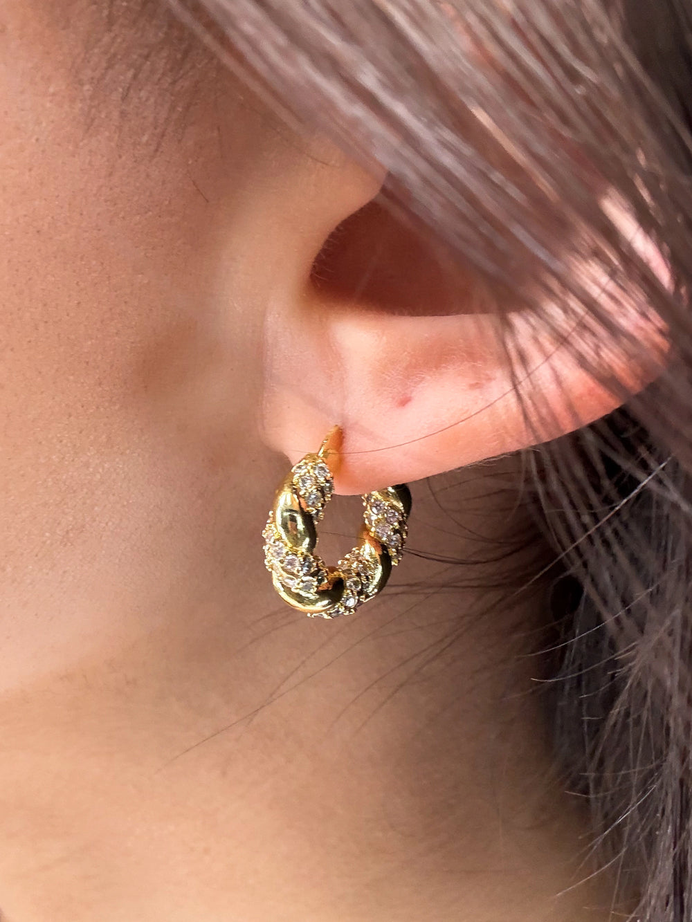 Introducing the B.b. Lila You're Perfect Hoops! These cubic zirconia diamond twisted hoops are sure to make a statement and elevate your style to a whole new level. Perfect for any occasion, these hoops are a must-have accessory for all fashion lovers.