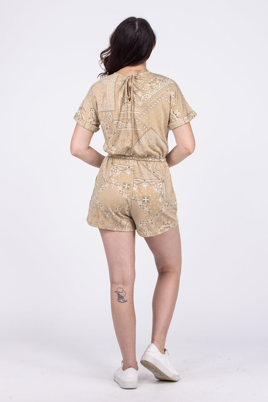 The Be Great Romper by Blue B is a soft and lightweight romper in a bandana print. The rolled short sleeves are tacked to keep the roll in place no matter what you are getting up to that day. It features a round neckline with a back keyhole that ties closed and the elastic waistband includes a functioning drawstring. Don't forget that this little French Terry beauty has pockets!!