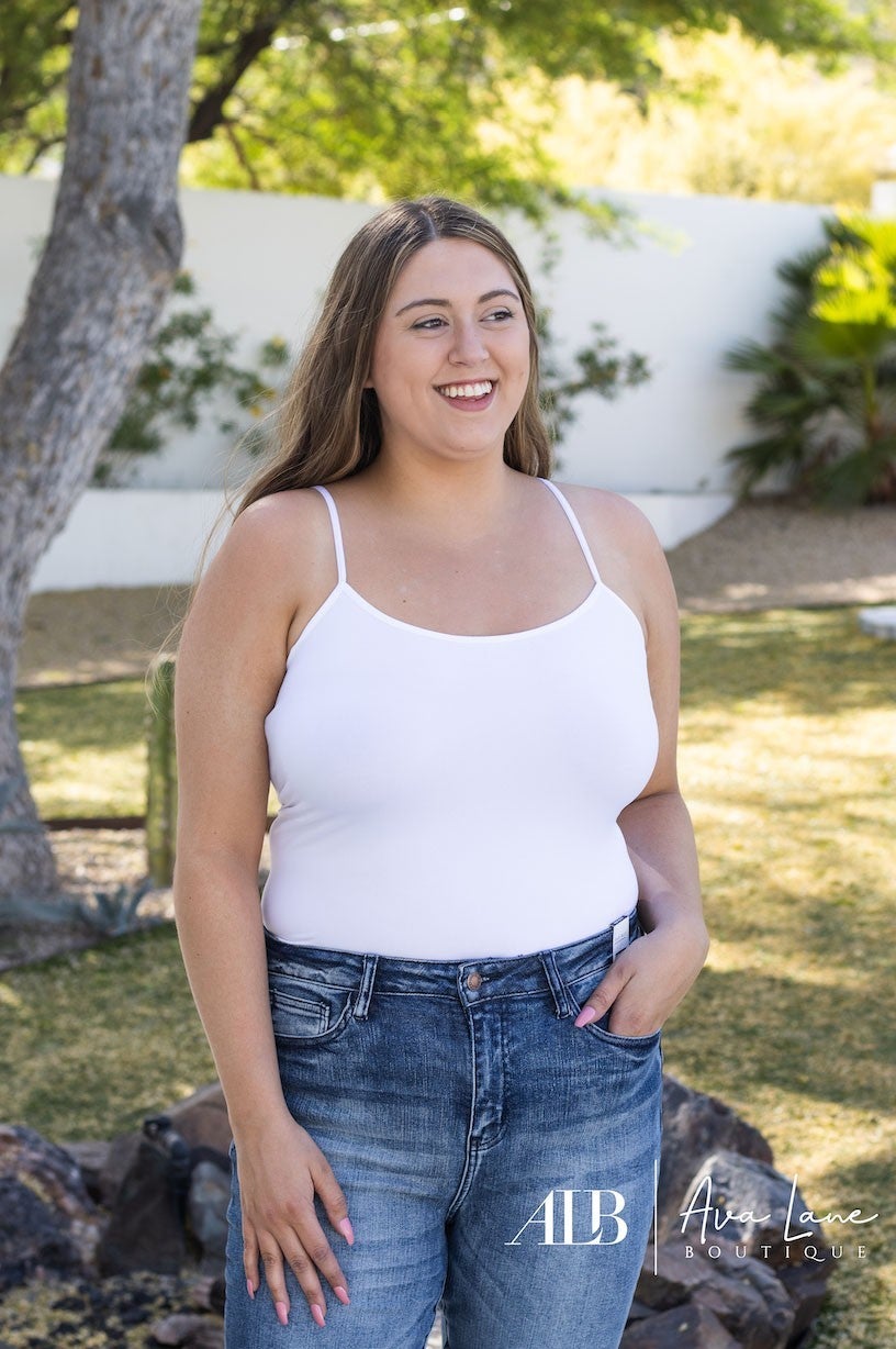 The Be More Tank Top by Yelete is the perfect form fitting solid tank. This super soft and stretchy tank top features a round neckline, straight hemline, and spaghetti straps. This tank top is great as a layering piece or on its own paired with denim.
