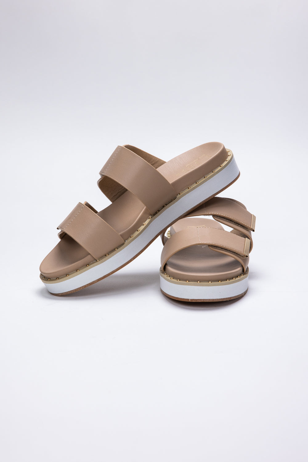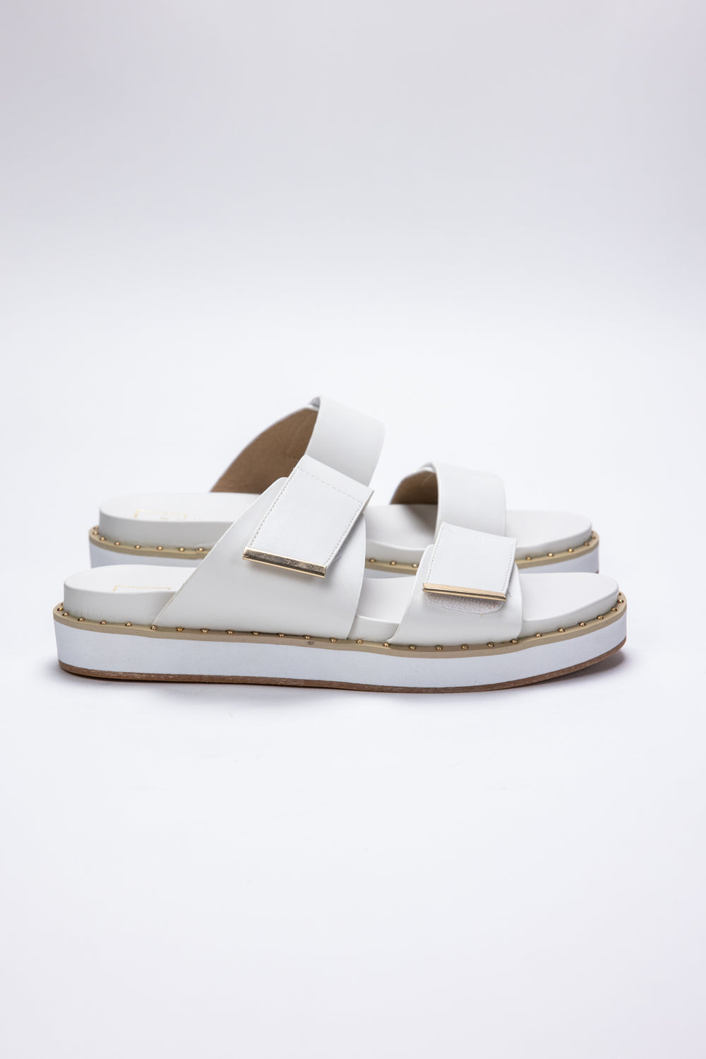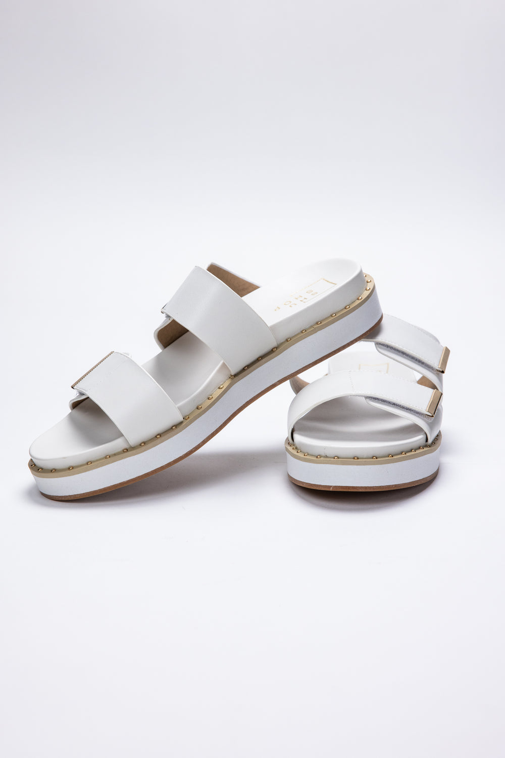 Step into summer with the Bethany Sandal from Shu Shop. Made with a faux leather upper and footbed, these sandals are both stylish and comfortable. The adjustable hook and loop closure ensures the perfect fit, while the cupped footbed provides support. Finished with gold stud detailing, these sandals are a must-have for your warm weather wardrobe.