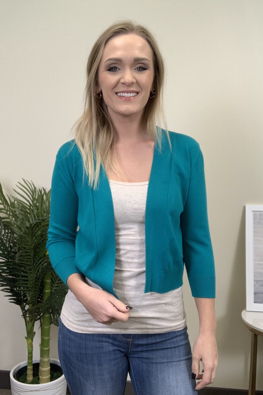 The Bolero Bonanza Cardigan by Cielo is the absolute perfect cardigan for those who love a bolero! This 3/4 length sleeve bolero cardigan features an open front and ribbed detail at the hem and sleeve edge. These bright colors will pop with any outfit!