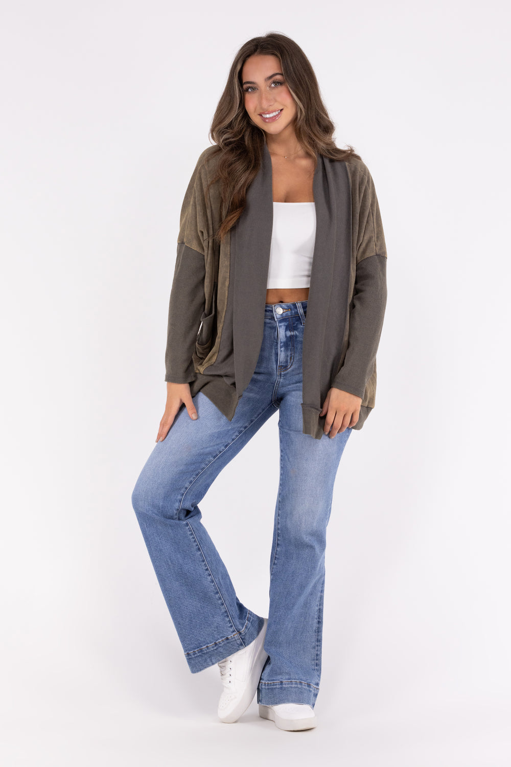 The Born To Stand Out Cardigan from Heyson will be your new favorite cardigan! This cardigan features a collared design, dolman style sleeves, contrasting details, pockets, and a straight hem. The Born To Stand Out Cardigan can be paired over your favorite tank, tee, or long sleeve tops!