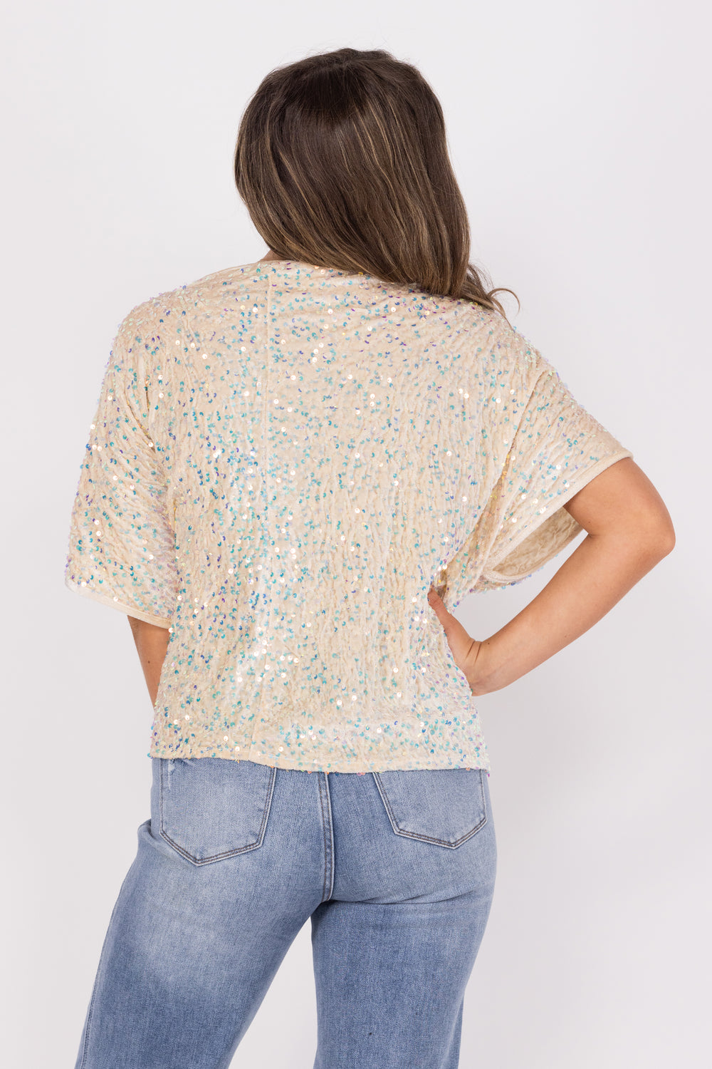 Brand New Me Women's Party Hi-Lo Sequin Short Sleeve Top *Final Sale*