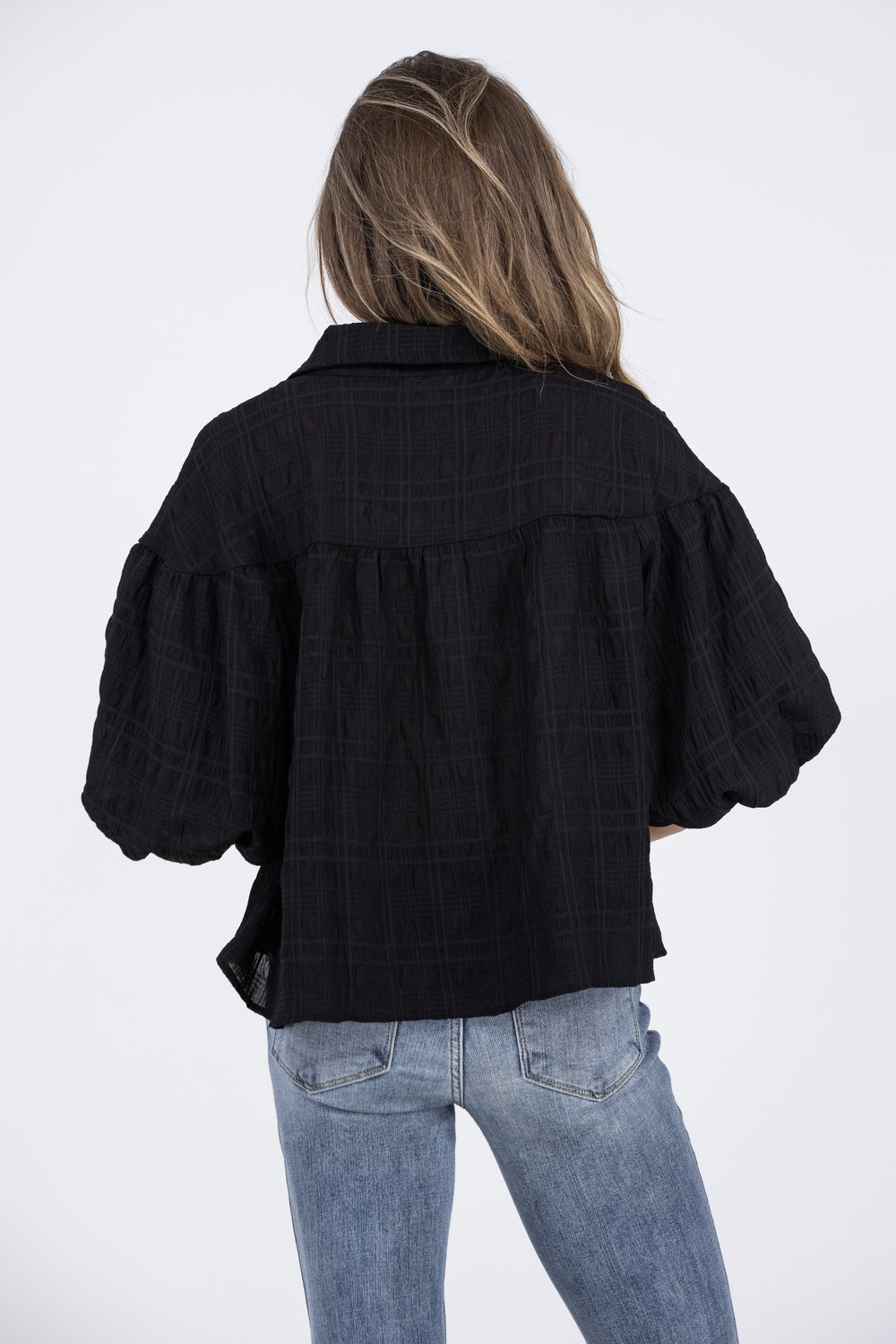Button The Line Women's Button Down Short Balloon Sleeve Top *Final Sale*