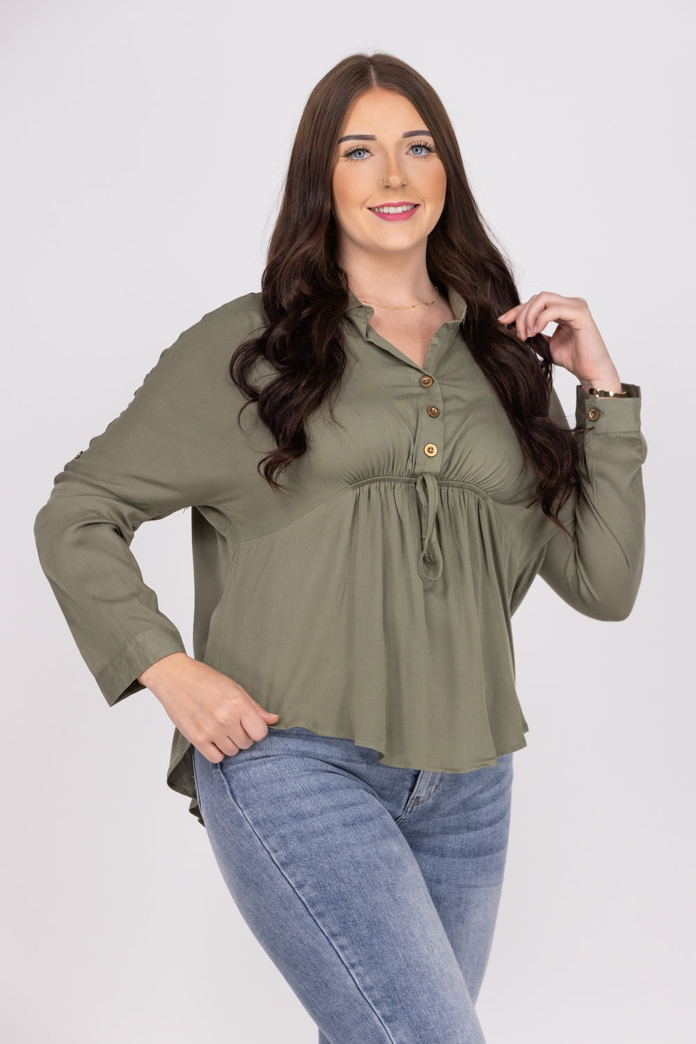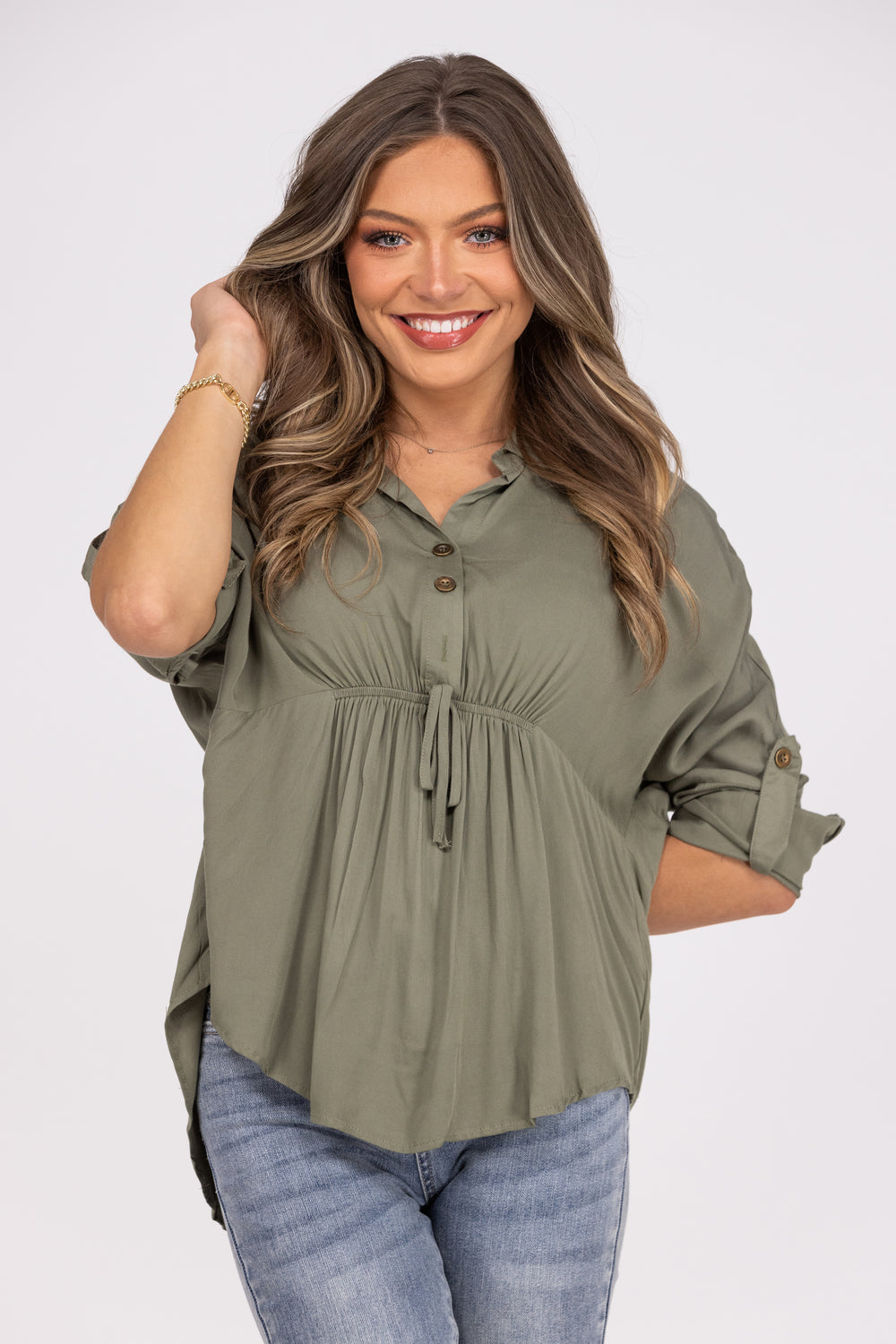 The By a Thread Top from Listicle will remind you that every victory counts, even if it's just by a thread. It features half sleeves, decorative front ties, a functional front button, a hi-lo hem, and a point collar. Pair with your favorite shoes and make the small victories count!