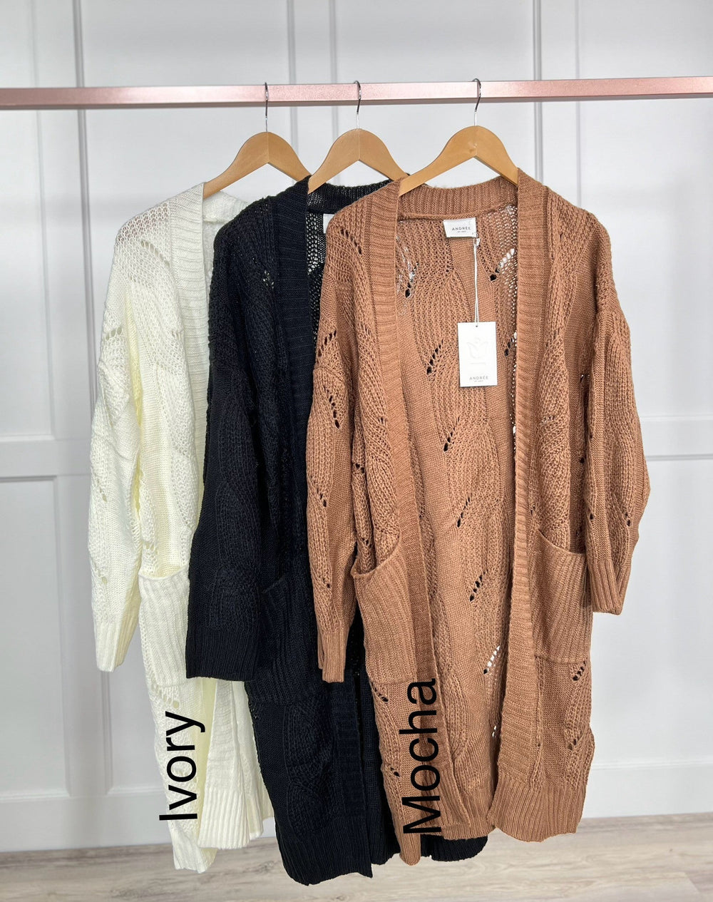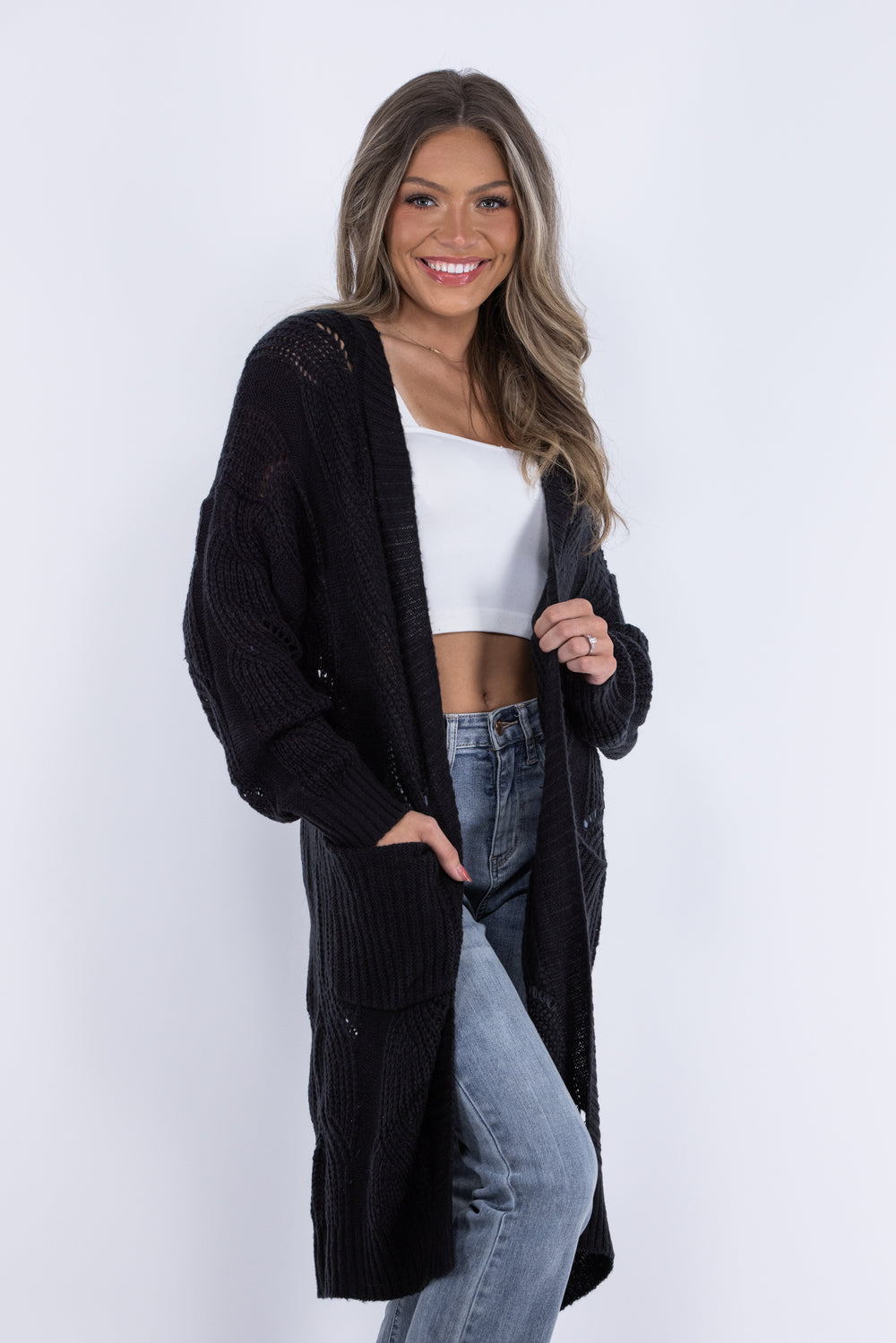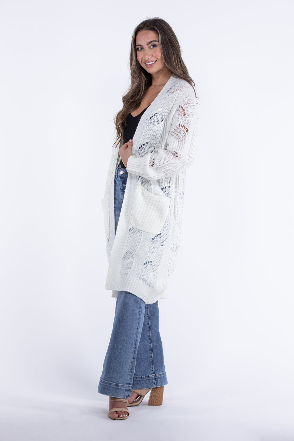 You'll be ready for a walk By The Seaside with this cozy cardigan from Andree By Unit. This cardigan features a slightly open, chunky knit, functional square pockets and ribbed hemming. This is the perfect layering piece to add texture to any and every outfit! Wear over our "Day One Brami" or your favorite graphic tee and our "Judy Blue America's Sweetheart High-Rise Straight Leg Denim" for a casually put together look.