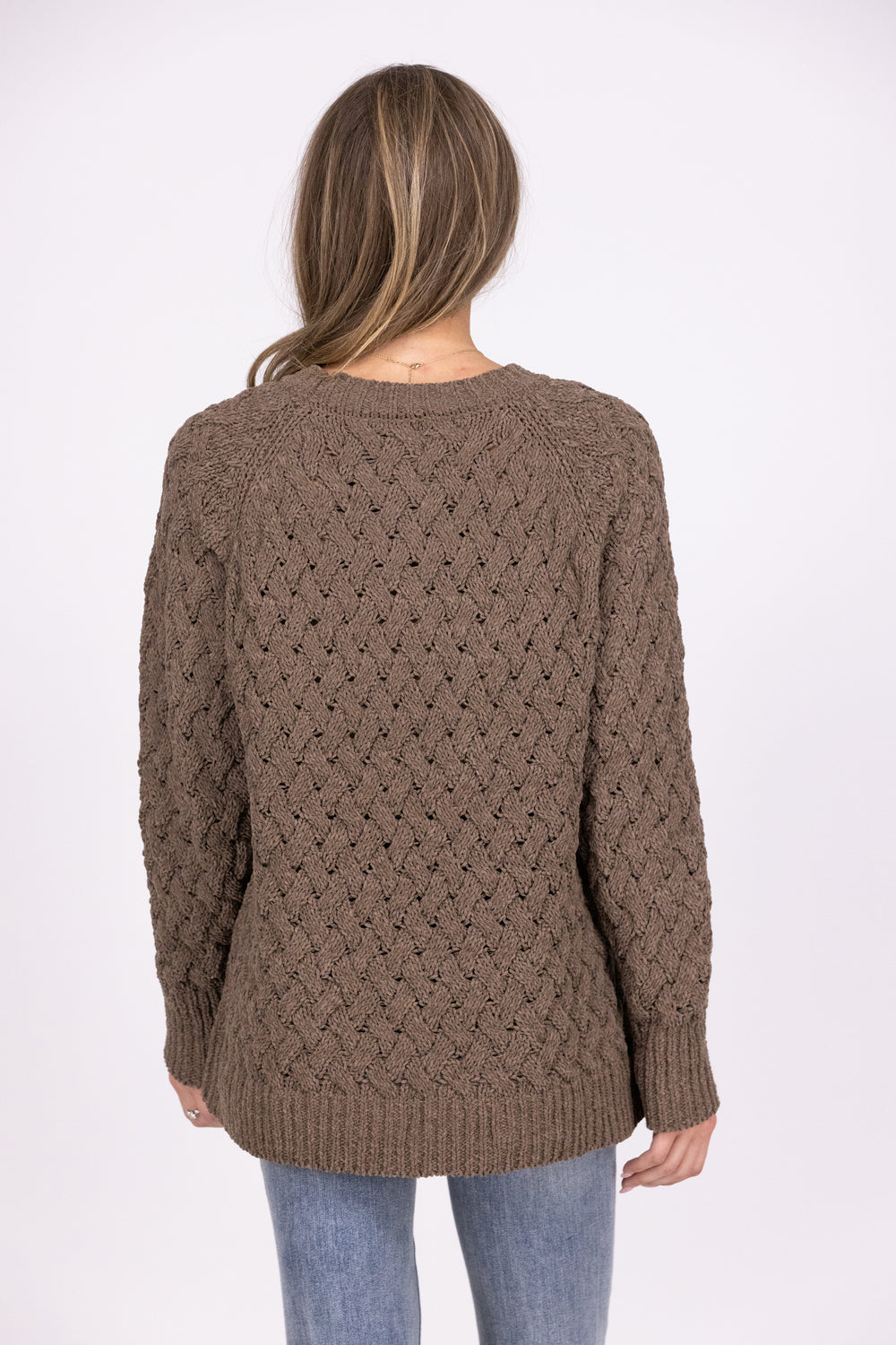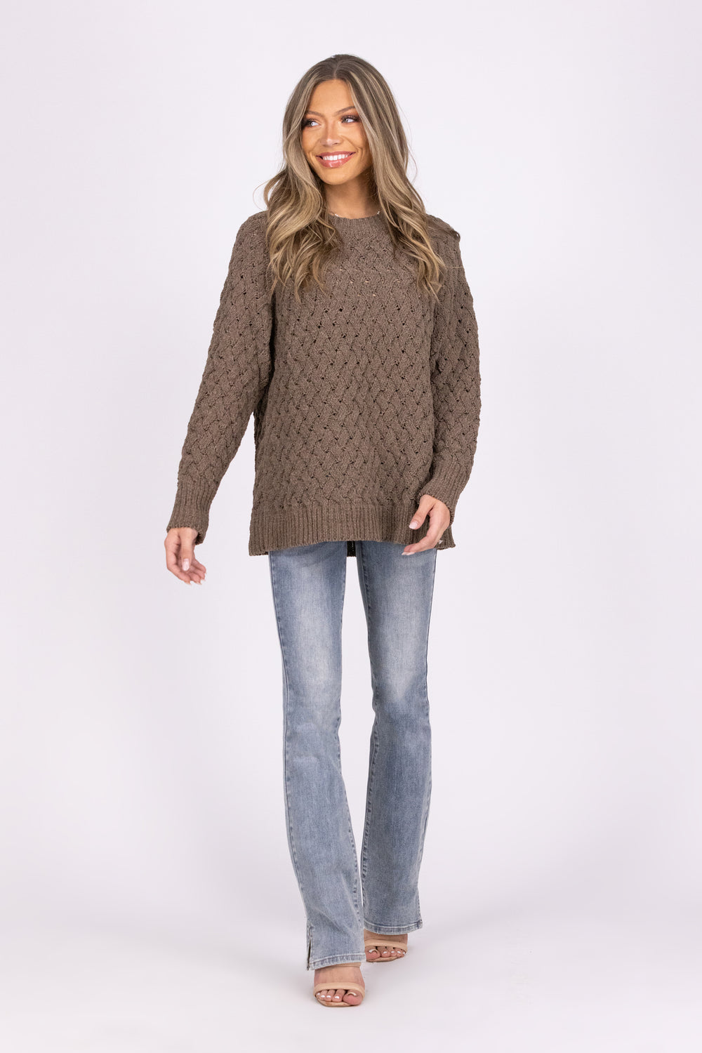 The Cable Knit Cuddles Sweater from White Birch is a stylish tank on a classic style. This sweater will instantly become your go-to. The oversized fit is all about lending your comfort and warmth and perfect to cuddle up in by the fire!